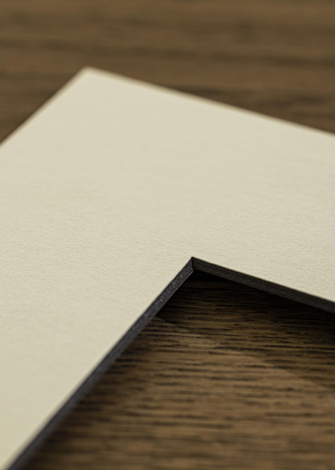 Fehér passepartout, magas minőségű, a piacvezető Cansontól. Canson passepartoutjai természetesen savmentesek és pH semlegesek, ami fontos a hosszú élettartam szempontjából. A motívumhoz legközelebb eső ferde élek feketék.