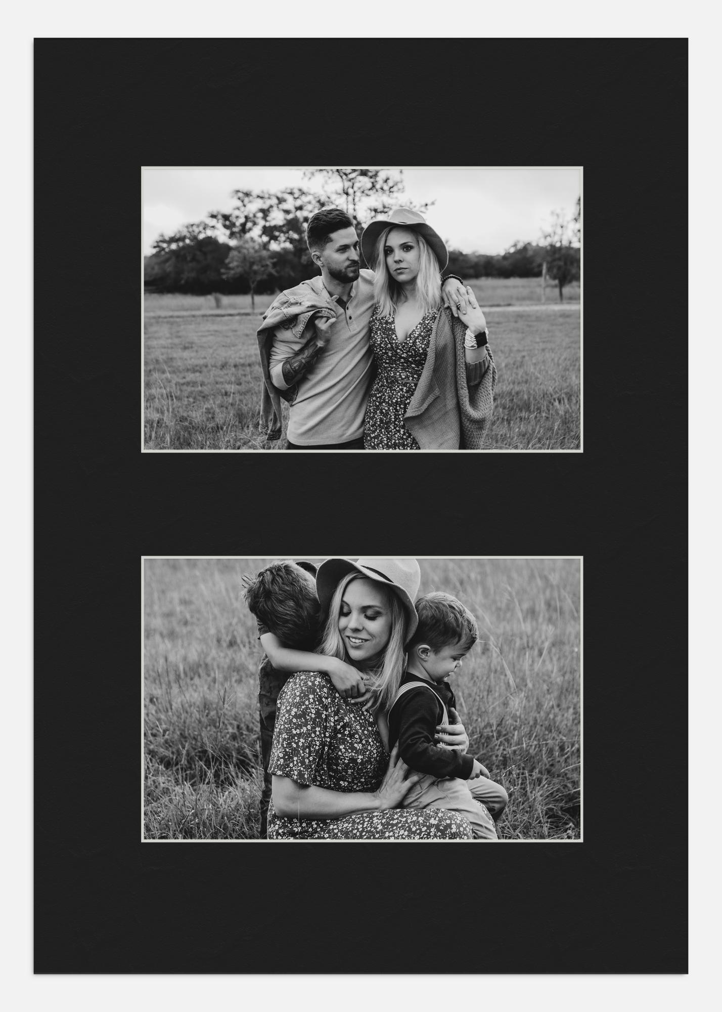 Savmentes fekete kollázspaszpartu ferdevágott fehér szélekkel, a legjobb minőségben. A paszpartuban 2 képnek van hely. Tökéletes, ha saját fotókollázst szeretne készíteni.
