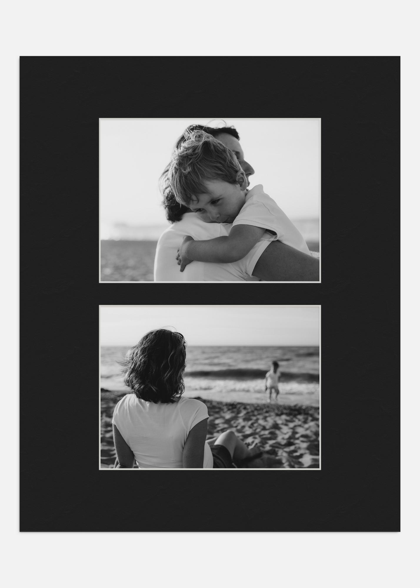 Savmentes fekete kollázspaszpartu ferde fehér élekkel, kiváló minőségben. A paszpartuban 2 kép számára van hely. Tökéletes, ha saját fotókollázst szeretnél készíteni.