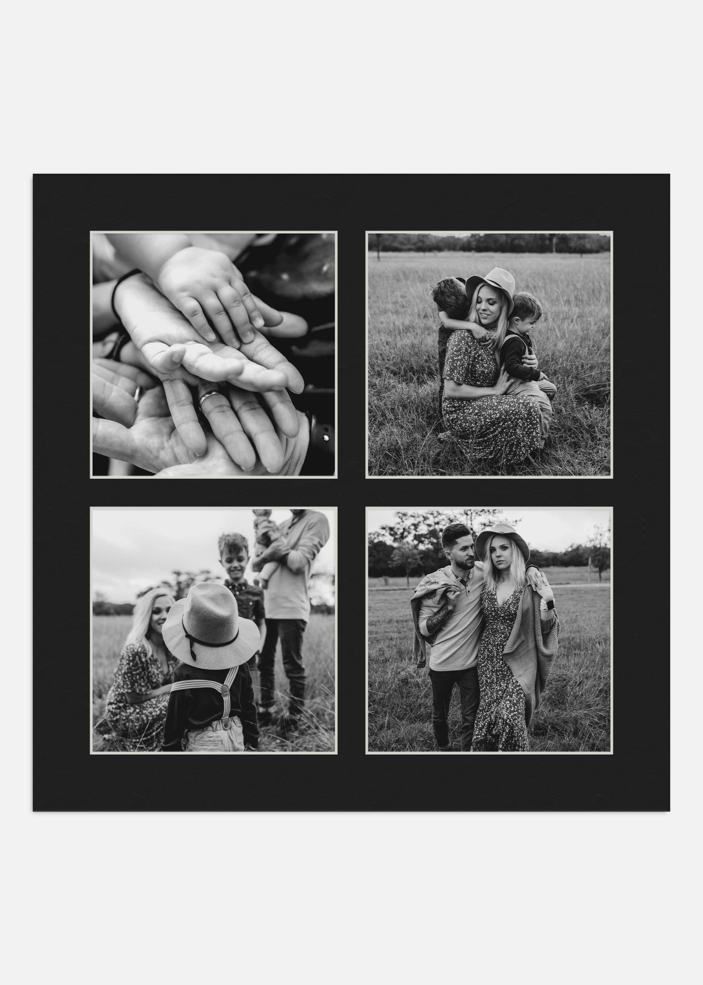 Savmentes fekete kollázs paszpartu ferde fehér szélekkel, a legmagasabb minőségben. A paszpartuban 4 kép számára van hely. Tökéletes, ha saját személyes fotókollázst szeretne készíteni.