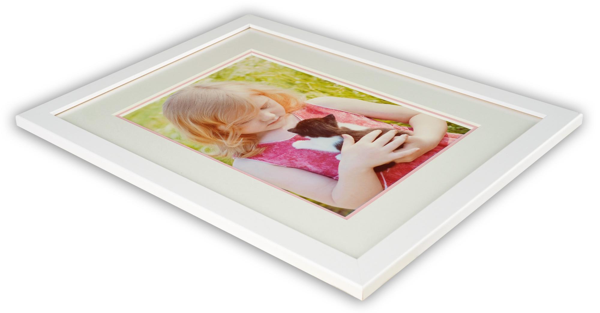 Személyre szabott paszpartu két rétegben, fehér paszpartu alappal és egy világos rózsaszín alsó réteggel, amely egy 5 mm-es színes szegélyt ad a kép körül. Tökéletes, ha szeretnél hatásos keretbe foglalni egy képet, kiemelni azt, és extra mélységet adni a motívumnak. Minden paszpartunk szép, 45 fokban vágott szegéllyel rendelkezik, ami komoly és professzionális keretet ad a képeidnek.