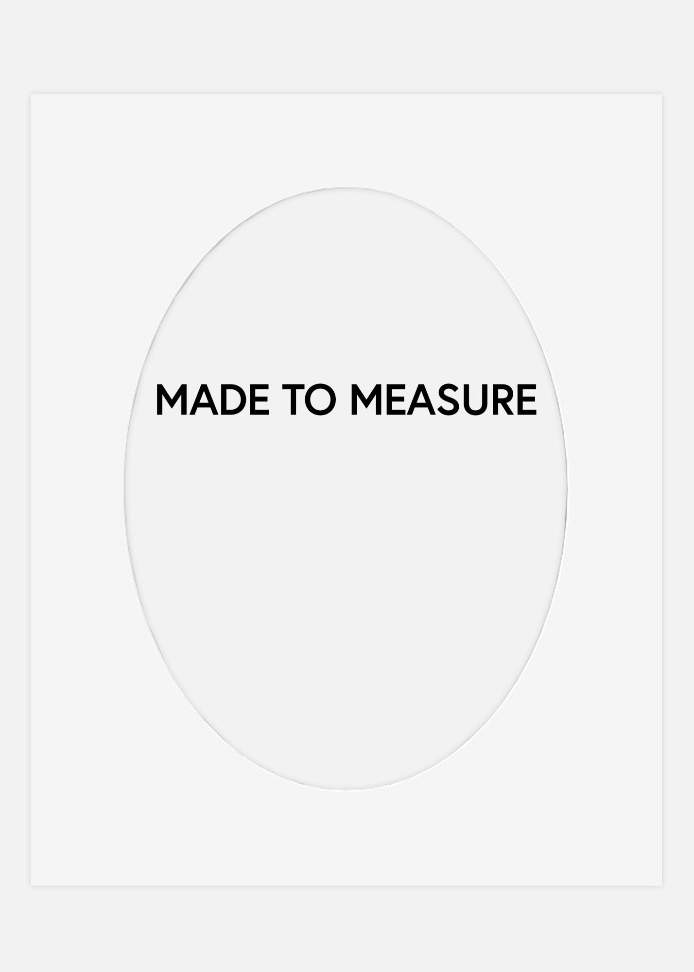 Fehér ovális vagy kerek paszpartu saját méretben, fehér 45 fokos ferdére vágott széllel a motívum mellett. Kiváló választás klasszikus stílusú portrékhoz.