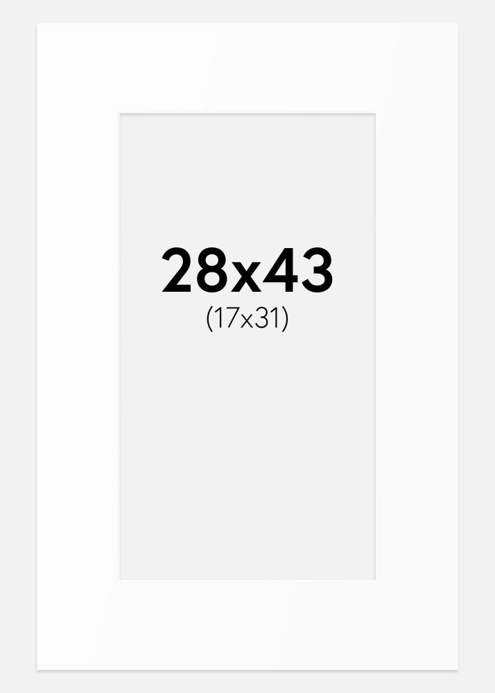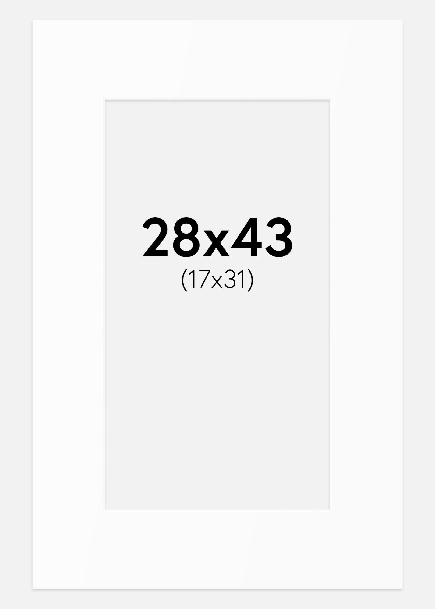 Ez az elegáns fehér paszpartu tökéletes választás képeid és műalkotásaid kiemelésére. A belső méret 18x32 cm méretű képekhez alkalmas, a külső méret pedig 28x43 cm, gyönyörű keretezést biztosít, amely megadja a témáknak a megérdemelt teret.