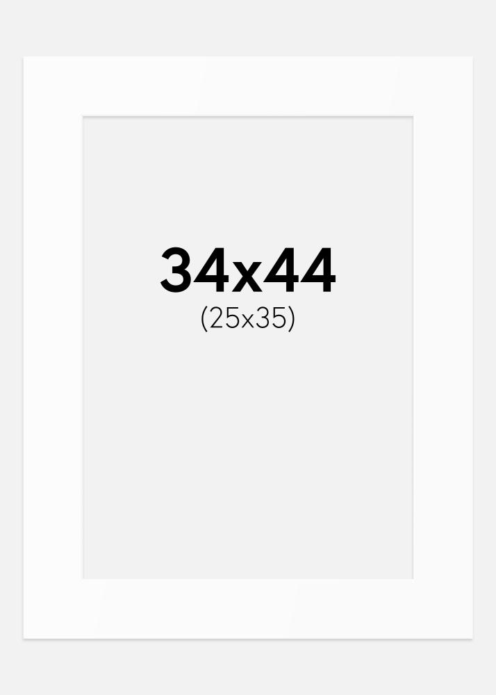 Ez az elegáns paszpartu fehér árnyalatban a tökéletes választás, hogy képeidnek és műalkotásaidnak stílusos keretet biztosíts. A ferde vágású belső él ugyanabban a fehér színben mélységet teremt, amely kifinomult módon emeli ki a motívumot. A paszpartu úgy van tervezve, hogy illeszkedjen a 26x36 cm-es méretű képekhez, míg a külső mérete 34x44 cm, így ideális különféle keretekhez.