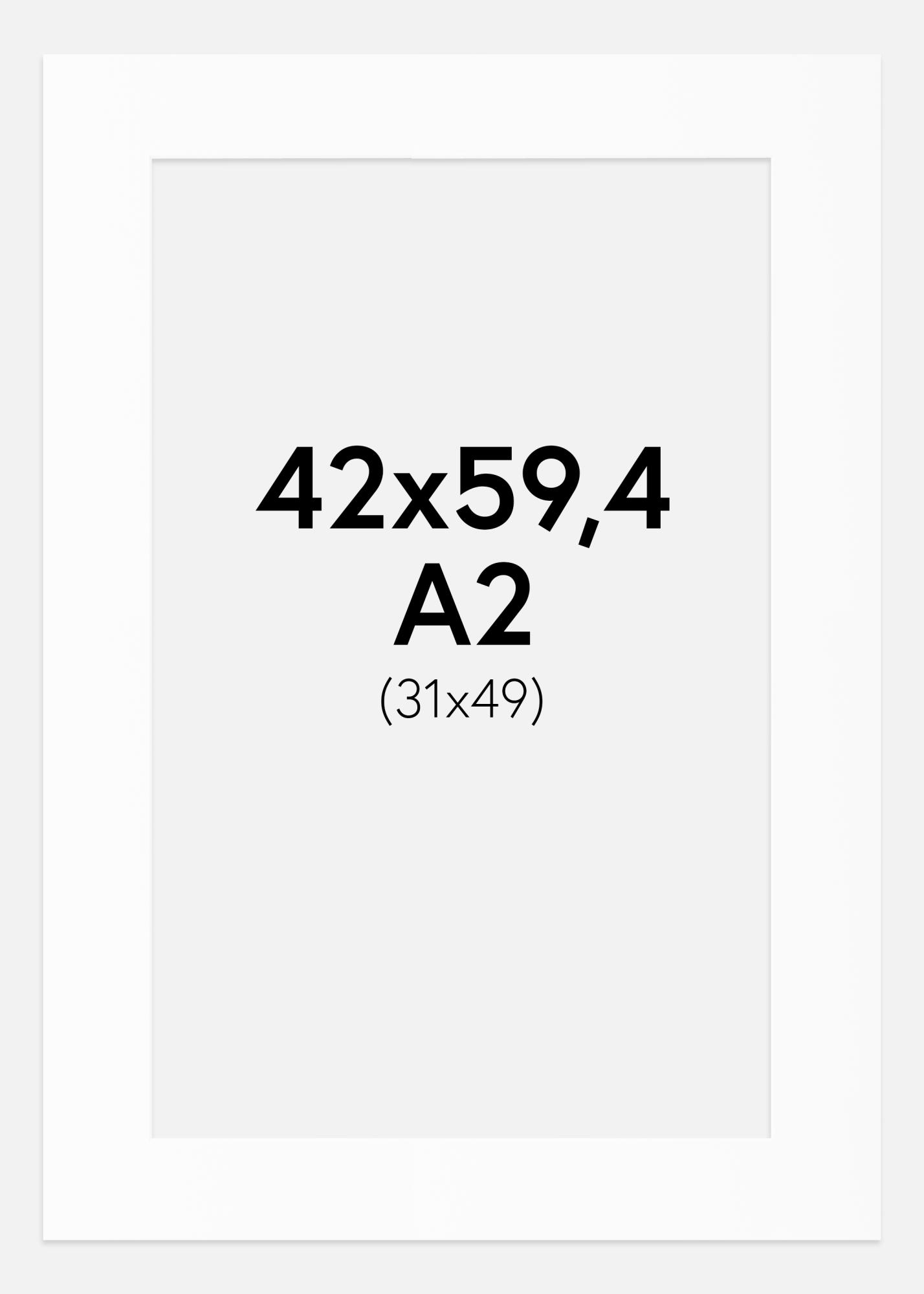 Ez az elegáns, fehér árnyalatú passepartout tökéletes választás, hogy kiemelje képeit és műalkotásait. A ferde, belső fehér vágás stílusos keretet teremt, amely mélységet és dimenziót ad a motívumának. A passepartout úgy van tervezve, hogy illeszkedjen a 32x50 cm méretű képekhez, míg a külső mérete 42x59,4 cm, ami megfelel az A2-es formátumnak.