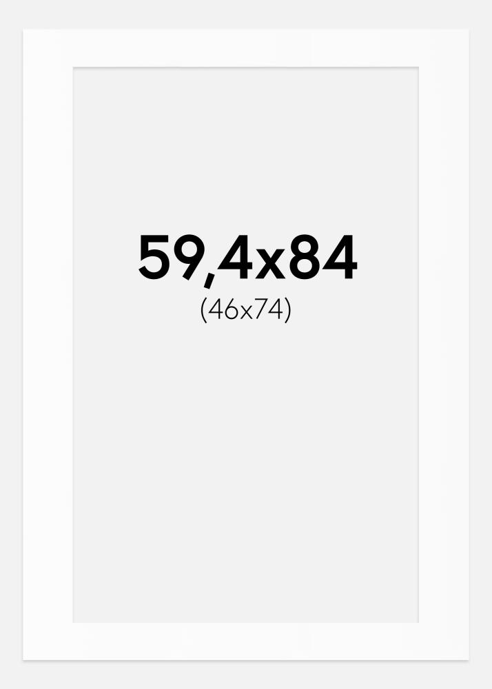 Ez az elegáns, fehér árnyalatú paszpartu tökéletes választás a képek és műalkotások kiemelésére. Azonos fehér színű, ferde belső élű kialakítása stílusos keretezést biztosít, amely mélységet és dimenziót ad a motívumnak. A paszpartu a 47x75 cm méretű képekhez készült, míg a külső mérete 59,4x84 cm, ami megfelel az A1-es formátumnak.
