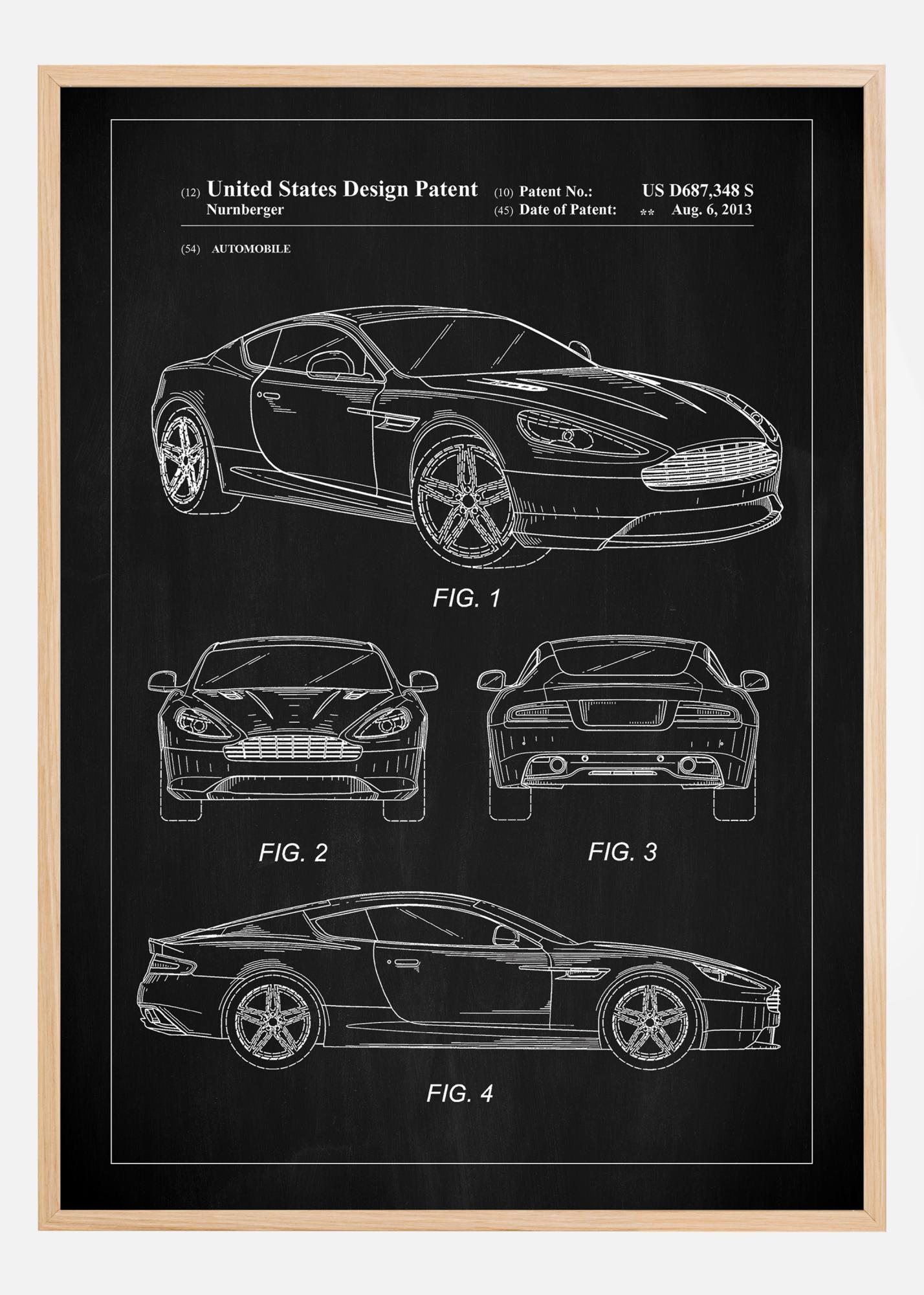 Ez a fekete-fehér szabadalmi poszter egy Aston Martin exkluzív formatervezését mutatja be, amely az amerikai szabadalmi szám alatt van nyilvántartva: US D687,348 S, 2013. augusztus 6-i keltezéssel. A szabadalmi poszter kiemeli az autóipar esztétikai és funkcionális áttörését, tisztelgés a formai tervezés fejlődése előtt. Ez egy kreatív részlet mindenki számára, aki értékeli a műszaki designt, és kötelező darab gyűjtőknek és technológiai rajongóknak.