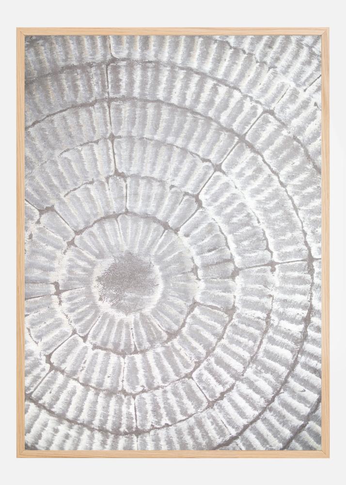 Egy üveges poszter szürke mintás táblával. A kör alakú bézs és fehér gyűrűk bordázott megjelenést kölcsönöznek a táblának, amely tökéletesen sima kört formáz a közepén. Lágy, nyugtató színeivel ez a csodálatos kép békés misztikát kelt. Tökéletes egy színes falra akasztva.