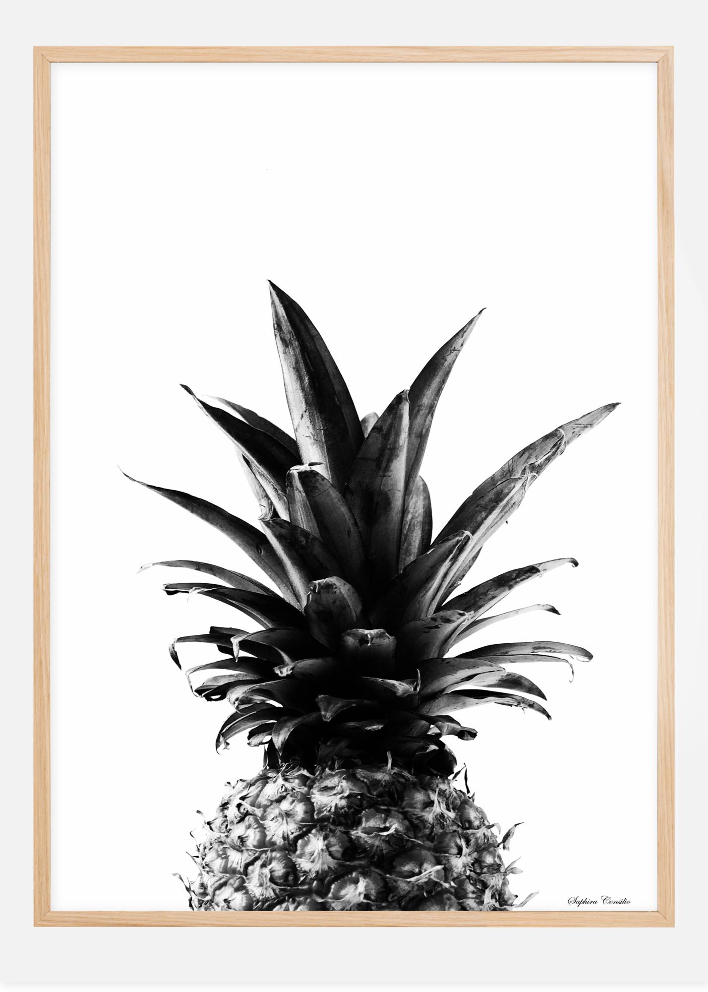 Egy fekete-fehér fényképes poszter ananásszal fehér háttér előtt, Saphira Consilio fotója. Egy letisztult kép modern kivágásban, könnyen kombinálható más poszterekkel egy nagyobb képfalon.