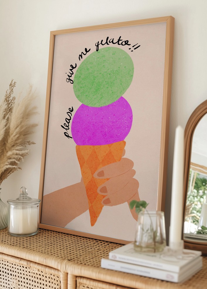 Please Give Me Gelato Ice Cream Typography Blueberry and Mint Poszter