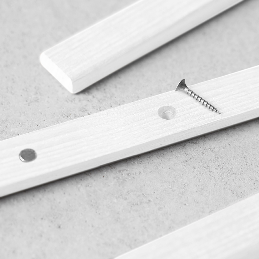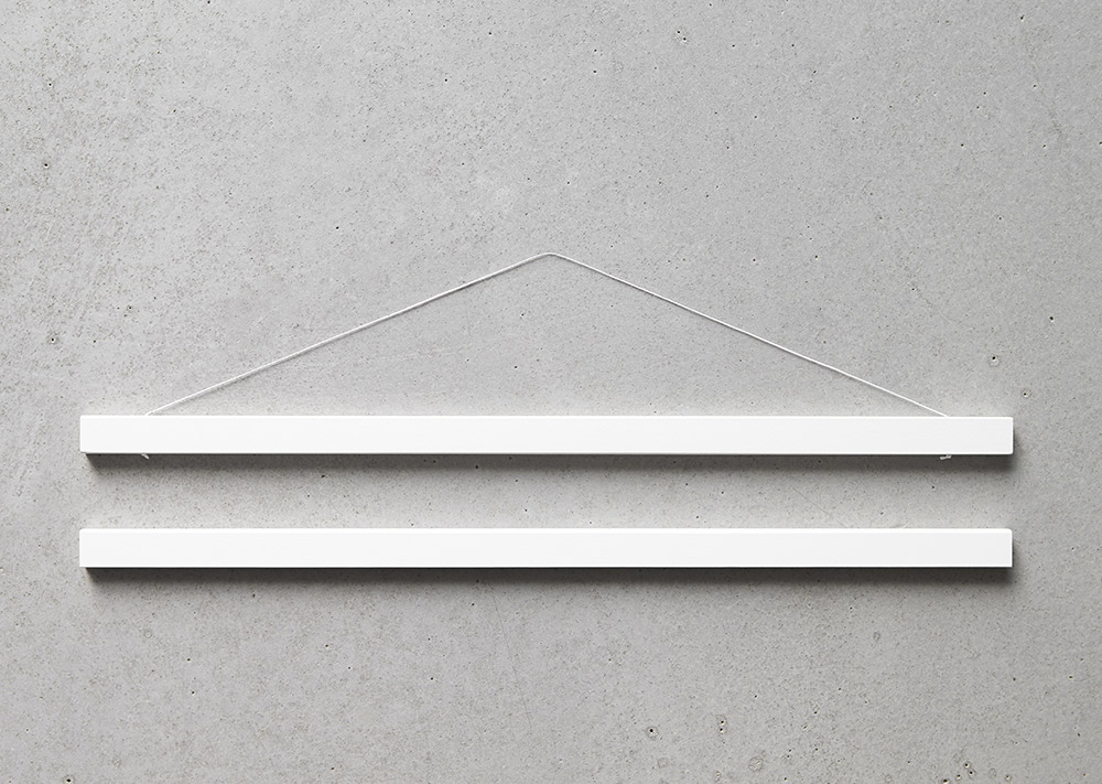 Egyedi poszterakasztó két funkcióval egy termékben. Használható klasszikus poszterakasztóként kötéllel a falon, vagy távolítsa el a kötelet, és helyezze a léceket közvetlenül a falra.