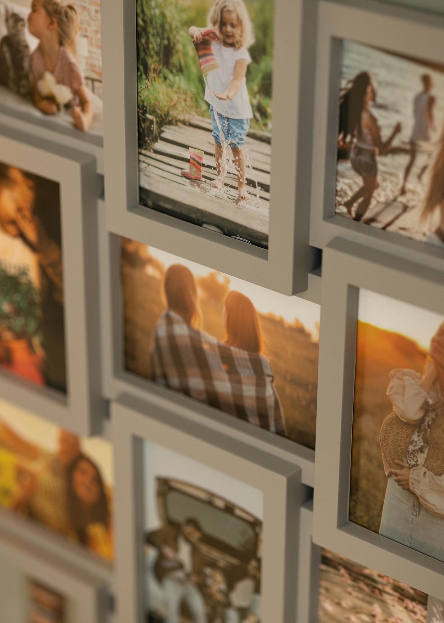 Ezzel a kollázs kerettel 12 legszebb fényképednek olyan keretet adhatsz, amely a motívumra helyezi a hangsúlyt. A semleges színnek köszönhetően a keret könnyen illeszthető különböző motívumokhoz, miközben a fotók árnyalatai kiemelkednek. A keret 10x15 cm-es méretű képekhez illik, álló és fekvő formátumban egyaránt. Választhatsz, hogy vízszintesen vagy függőlegesen akarod a keretet a falra akasztani.