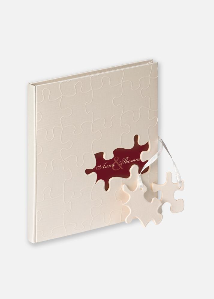 Vendégkönyv fehér és piros lenvászonnal borított borítóval. A vendégkönyv elején van hely egy személyes kép vagy az ifjú pár neve számára. Elérhető hozzá illő esküvői album is az esküvői képeidhez.