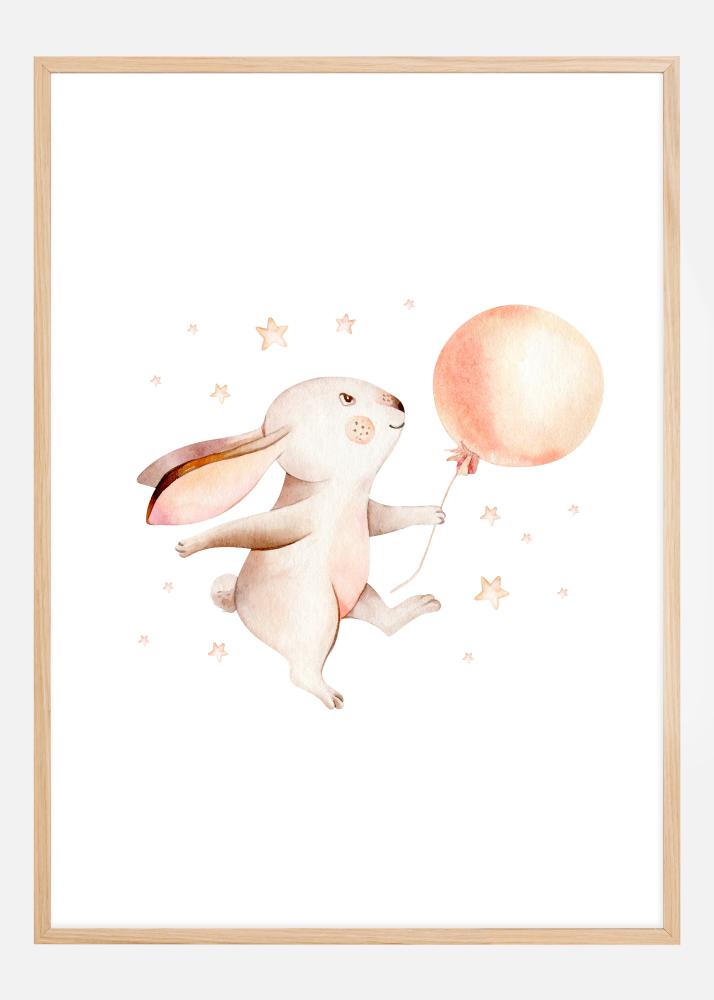 Ez a bájos poszter egy boldog nyulat ábrázol, aki egy nagy, színes léggömb segítségével lebeg a levegőben. A kis arany csillagokkal körülvéve ez az álomszerű akvarell varázslatot és szabadságot sugall. Az illusztráció világos és meleg tónusai játékosságot és boldogságot idéznek elő, ami tökéletes arra, hogy örömöt csempésszen egy gyerekszobába vagy a lakás bármelyik hangulatos zugába.