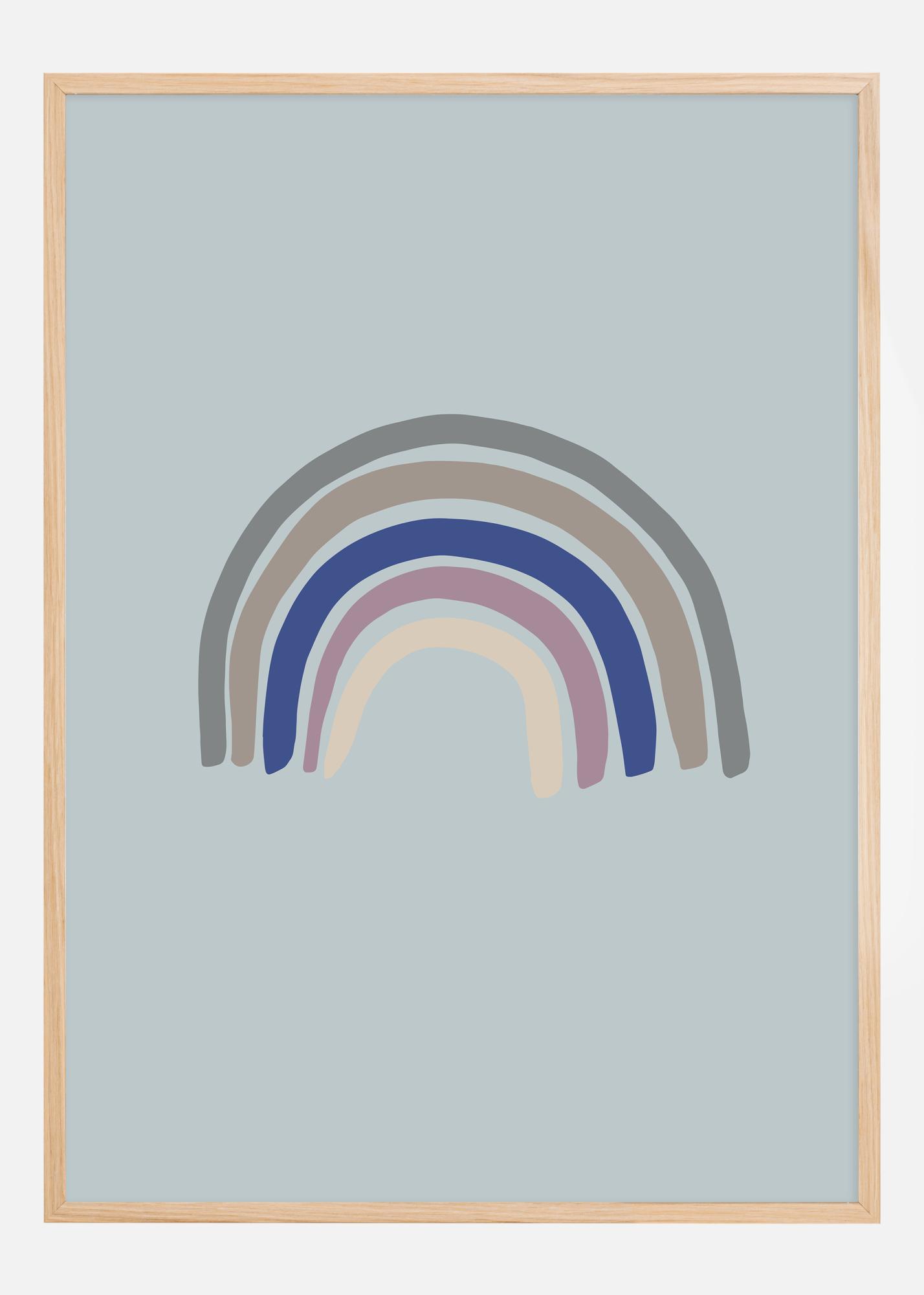 Ez a letisztult és kortárs poszter egy stilizált szivárványt ábrázol nyugtató kék háttér előtt, amely modern értelmezést kínál a klasszikus motívumra. A szivárvány ívei, szürke, kék, rózsaszín és lila árnyalatokban, lágy átmenetet hoznak létre az egyik színből a másikba, miközben egyensúlyt és harmóniát sugároznak. Ez a minimalista műalkotás finom, de erőteljes emlékeztető a reményre és a nyugalomra, és elegáns kiegészítője lehet bármelyik kortárs térnek.