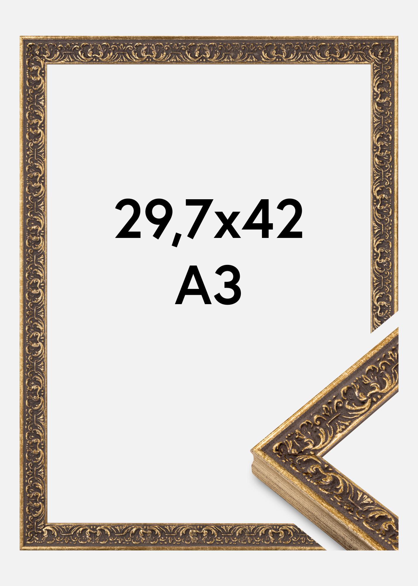 Ez az elegáns képkeret 29,7x42 cm méretben a klasszikus design és a modern funkcionalitás tökéletes kombinációja. Olaszországban készült, és antik ihletésű stílust kínál gyönyörűen részletes díszítéssel szürkés árnyalatban, aranyszínű elemekkel. A színek ezen egyedi kombinációja vintage hangulatot kölcsönöz a keretnek egy kifinomult patinaeffekttel, így ideális egy időtlen légkör megteremtéséhez otthonában.