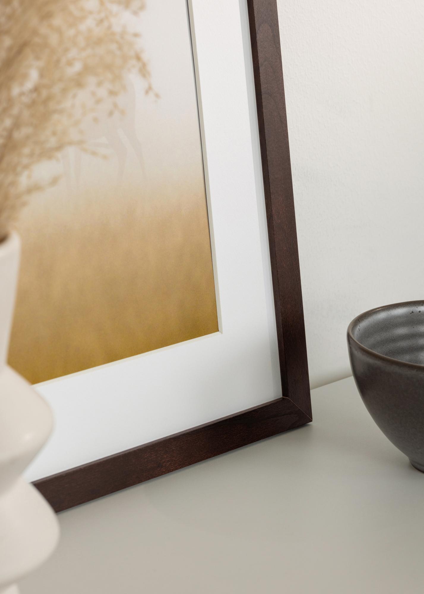 Ez a képkeret a stílus és a funkcionalitás tökéletes kombinációja. Elegáns sötét felületével és időtlen kialakításával gyönyörű kiegészítője lesz bármilyen típusú belső térnek, legyen az minimalista vagy hagyományos. A keret kifejezetten arra lett tervezve, hogy 60x90 cm méretű képeket fogadjon, így ideális kedvenc fényképeid, műalkotásaid vagy más jelentőségteljes képeid bemutatására.