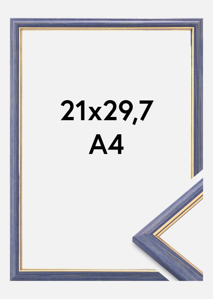 Ez az elegáns képkeret 21x29,7 cm-es méretben a klasszikus dizájn és a modern funkcionalitás tökéletes kombinációja. Mélykék kidolgozásával és a szélén lévő finom arany részletekkel kifinomult keretet biztosít kedvenc motívumaid számára. A keskeny, profilozott keret stílusos kontrasztot nyújt, ami egyedi módon emeli ki a műalkotásokat vagy fényképeket. A fa szerkezete diszkréten átlátszik a színen, ami meleg és élénk karaktert ad a képkeretnek.