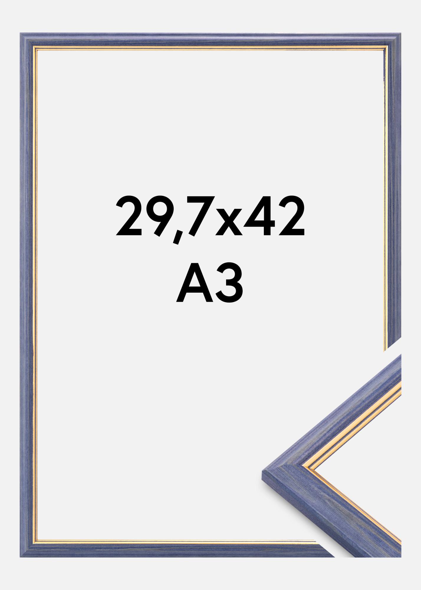 Ez az elegáns képkeret mélykék árnyalatban a klasszikus dizájn és a modern funkcionalitás tökéletes kombinációja. Keretmérete 29,7x42 cm (A3), ideális a kedvenc műalkotásaid vagy fényképeid kiemelésére. A keskeny, 15 mm széles keretléc finom arany részletekkel a széleken kifinomult érzést nyújt és stílusos kontrasztot teremt a motívummal. A fa struktúrája diszkréten átlátszik a színen, meleg és élettel teli karaktert kölcsönözve a képkeretnek.