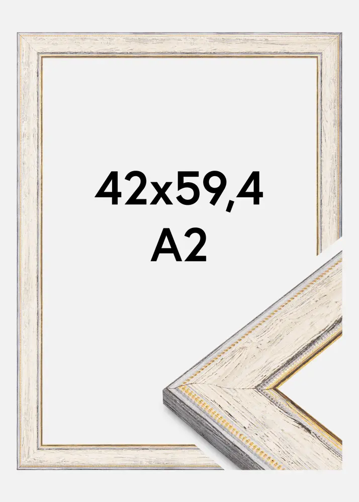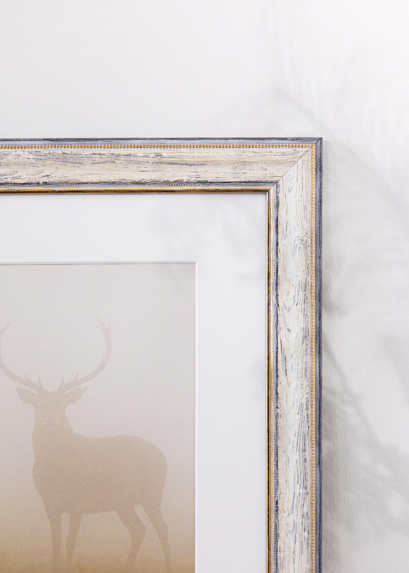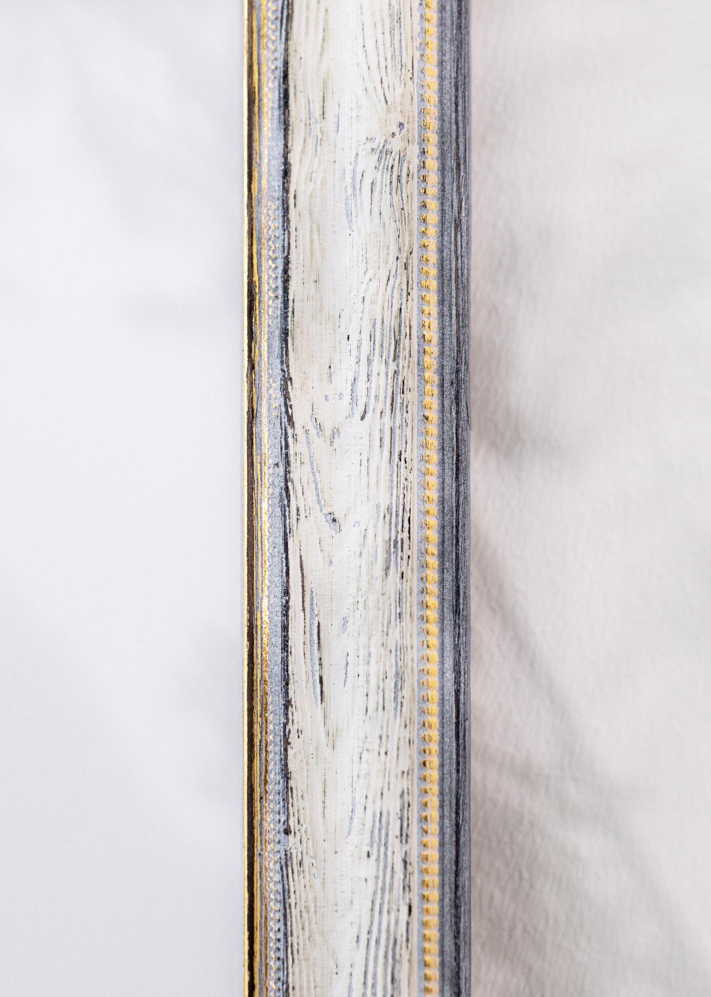 Ez az elegáns képkeret a vintage inspiráció és a modern funkcionalitás tökéletes kombinációja. Rusztikus fehér és szürke fa kidolgozása bájosan öregített megjelenést nyújt, amely kiválóan illeszkedik vidéki és shabby chic berendezésekhez. A belső szélén lévő finom arany részletek klasszikus érintést adnak, ami időtlen és kifinomult érzetet kölcsönöz a fényképeidnek és műveidnek.