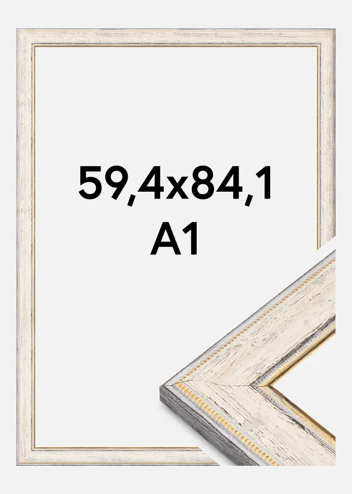 Ez az elegáns képkeret a vintage inspiráció és a modern funkcionalitás tökéletes kombinációja. Rusztikus fehér és szürke fahatásával a keret bájosan öregedett megjelenést kínál, amely kiválóan illik a vidéki és shabby chic berendezésekhez. A belső szélén található finom arany részletek klasszikus érintést kölcsönöznek, amely ideálissá teszi az örökérvényű fényképek és műalkotások kiemelésére.