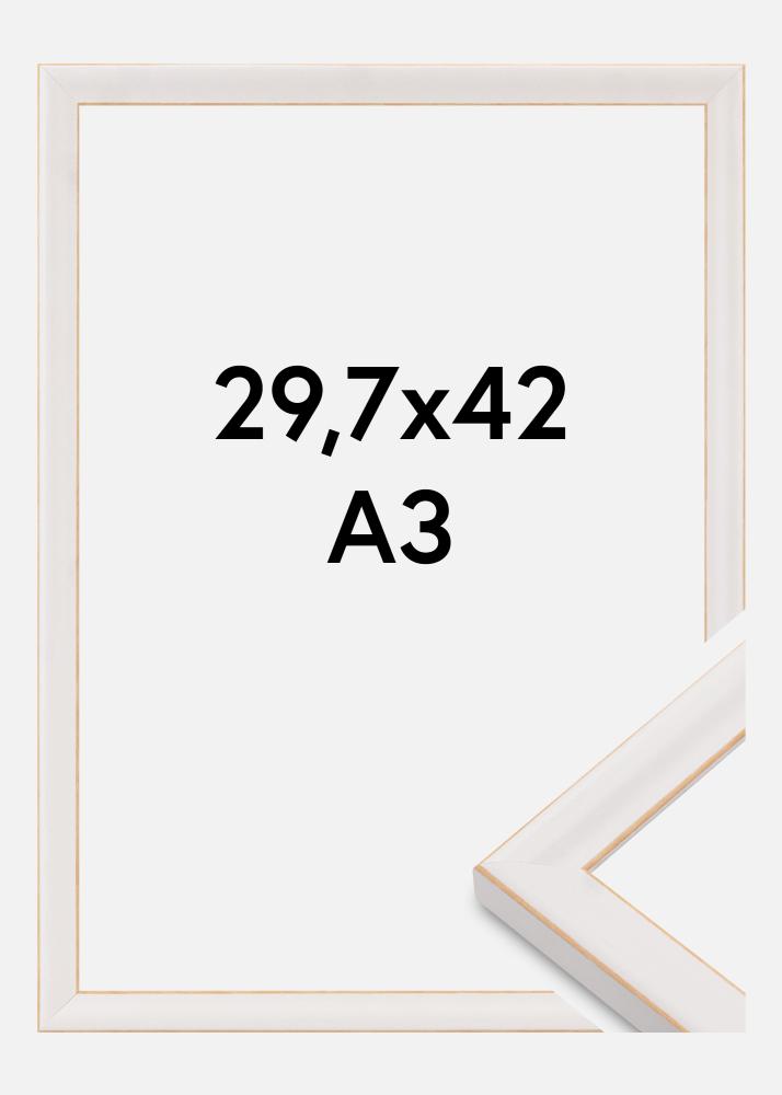 A keret fából készült, 20 mm széles keretlécet és 16 mm mélységet tartalmaz. A belső szélen futó finom aranyrészlet exkluzív érzést kölcsönöz a képnek. 29,7 x 42 cm-es méretével tökéletesen illeszkedik A3-as formátumú témákhoz. Ez a képkeret fém akasztókkal van felszerelve a hátoldalán, ami egyszerűvé teszi mind vízszintesen, mind függőlegesen történő akasztását a szükségleteid szerint.