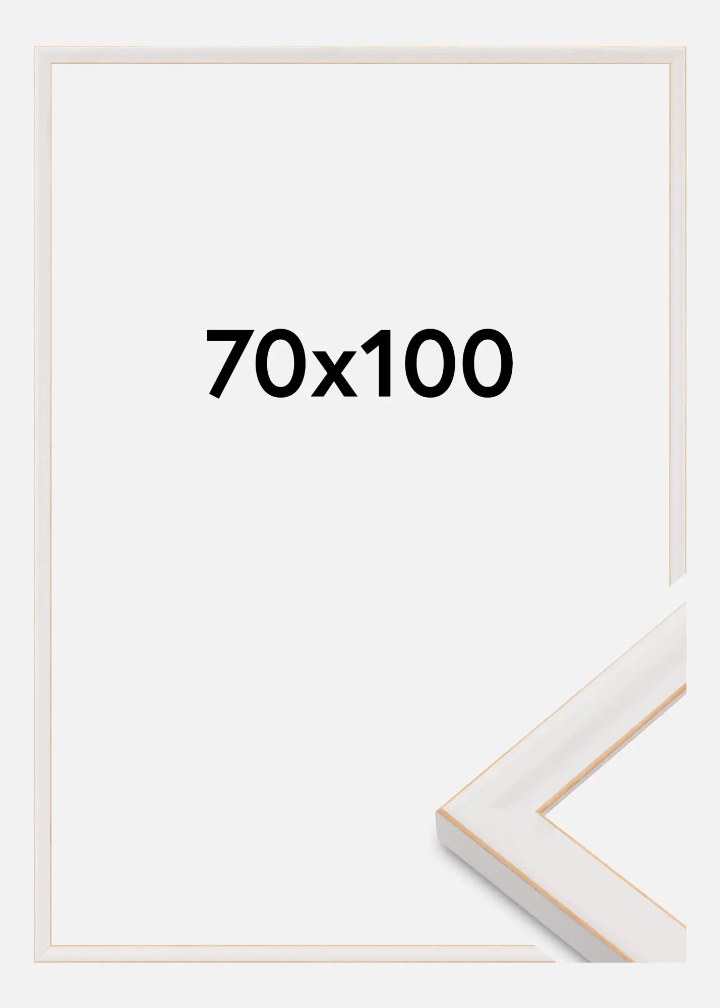 Ez az elegáns képkeret egy lágy, krémfehér árnyalatban, vékony aranyszegéllyel a klasszikus és modern dizájn tökéletes kombinációja. A 70x100 cm-es keretméretével ideális műalkotások, fényképek vagy emlékek időtlen kiemelésére. A belső él mentén húzódó finom arany részlet exkluzív érzést kölcsönöz, és stílusosan keretezi be képeidet.