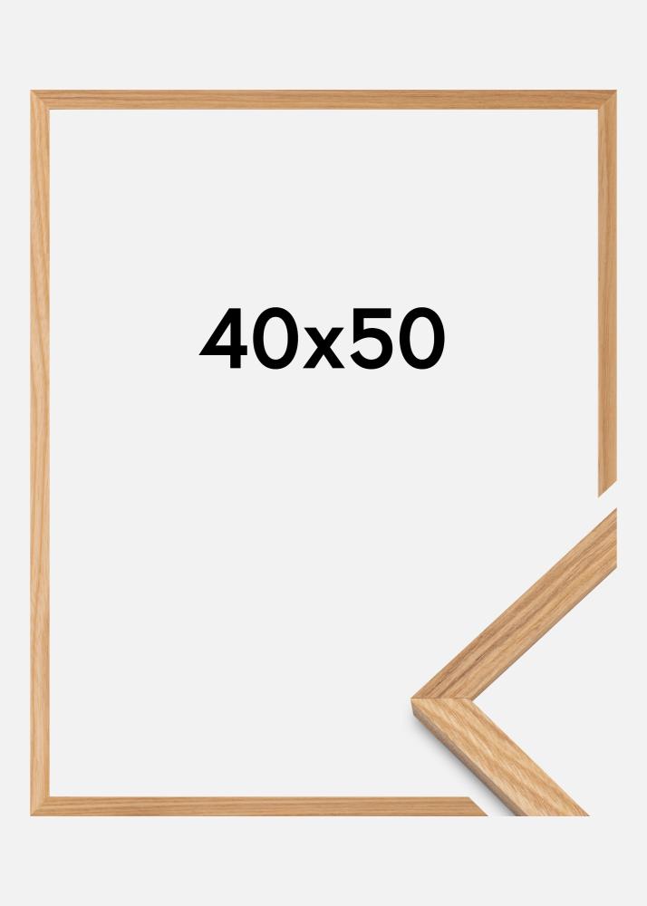 A keretet úgy tervezték, hogy 40x50 cm méretű képekhez illeszkedjen, ami bőséges helyet biztosít kedvenc képeid megjelenítésére. A 14 mm széles keretszéllel és 18 mm mélységgel rendelkező képkeret robusztus és stabil szerkezetet kínál. A tölgy gyönyörű erezete minden keretnek egyedi és élénk karaktert kölcsönöz, ami különlegessé teszi minden egyes darabot.