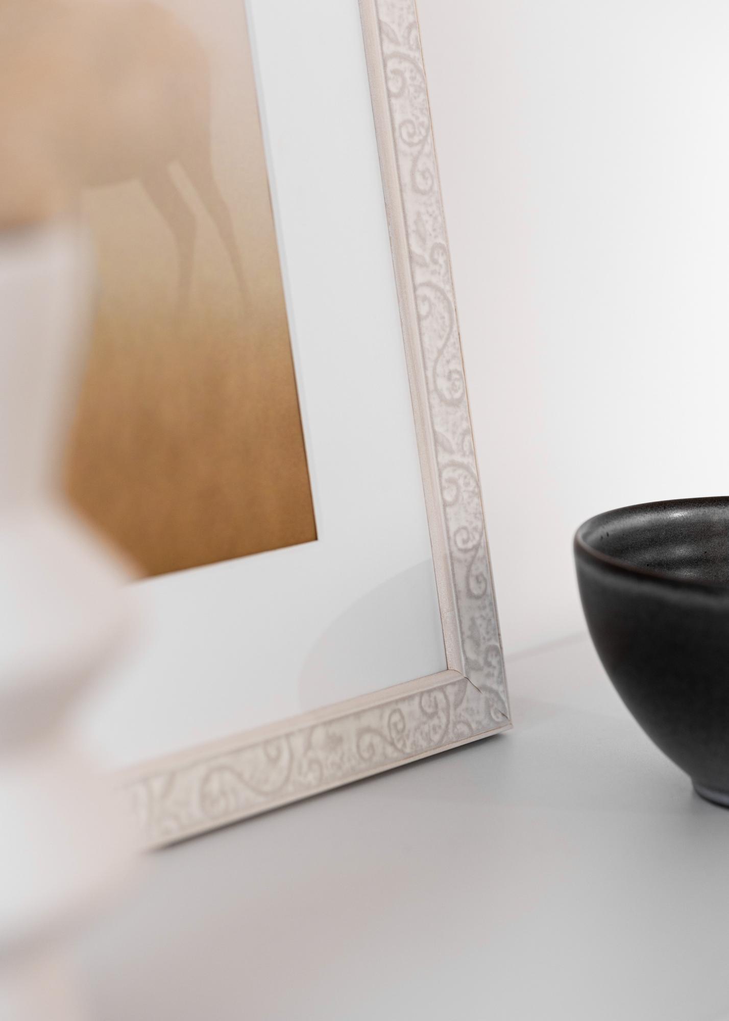 Változtasd műalkotássá az emlékeidet ezzel az elegáns, világos bézs fényképkerettel. Az élek mentén finom, díszített mintával rendelkezik, amely stílusos és romantikus hangulatot kölcsönöz, tökéletesen illeszkedve mind klasszikus, mind pedig vidéki belső terekhez. A keret fából készült, és vékony profilja van, melynek szélessége 25 mm, mélysége 14 mm, így ízléses kiegészítője lesz otthonának.