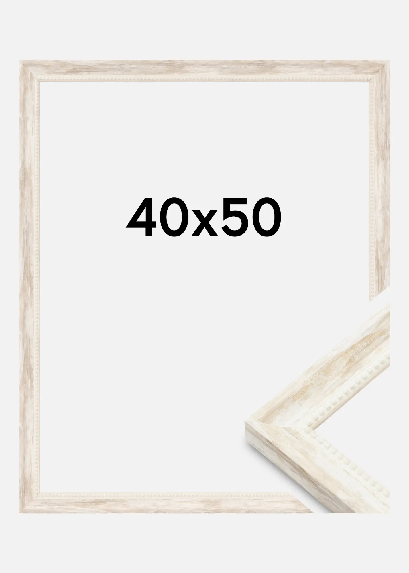 Ez a gyönyörű, fehér színű képkeret a rusztikus báj és a letisztult elegancia tökéletes kombinációja. A 40x50 cm-es méretének köszönhetően ideális arra, hogy kiemelje kedvenc motívumait, legyen szó akár műalkotásokról, akár fényképekről. A keret belső oldalán dekoratív gyöngyszegély található, amely klasszikus és részletgazdag designt biztosít, amely modern és tradicionális belső terekhez egyaránt illik.
