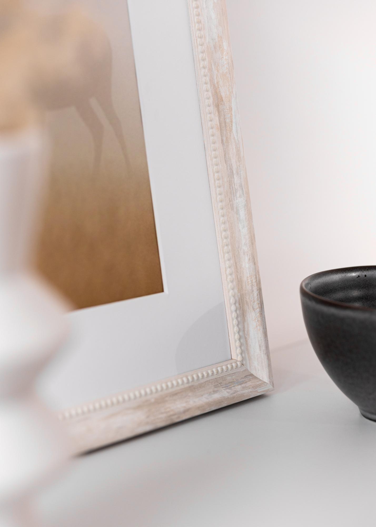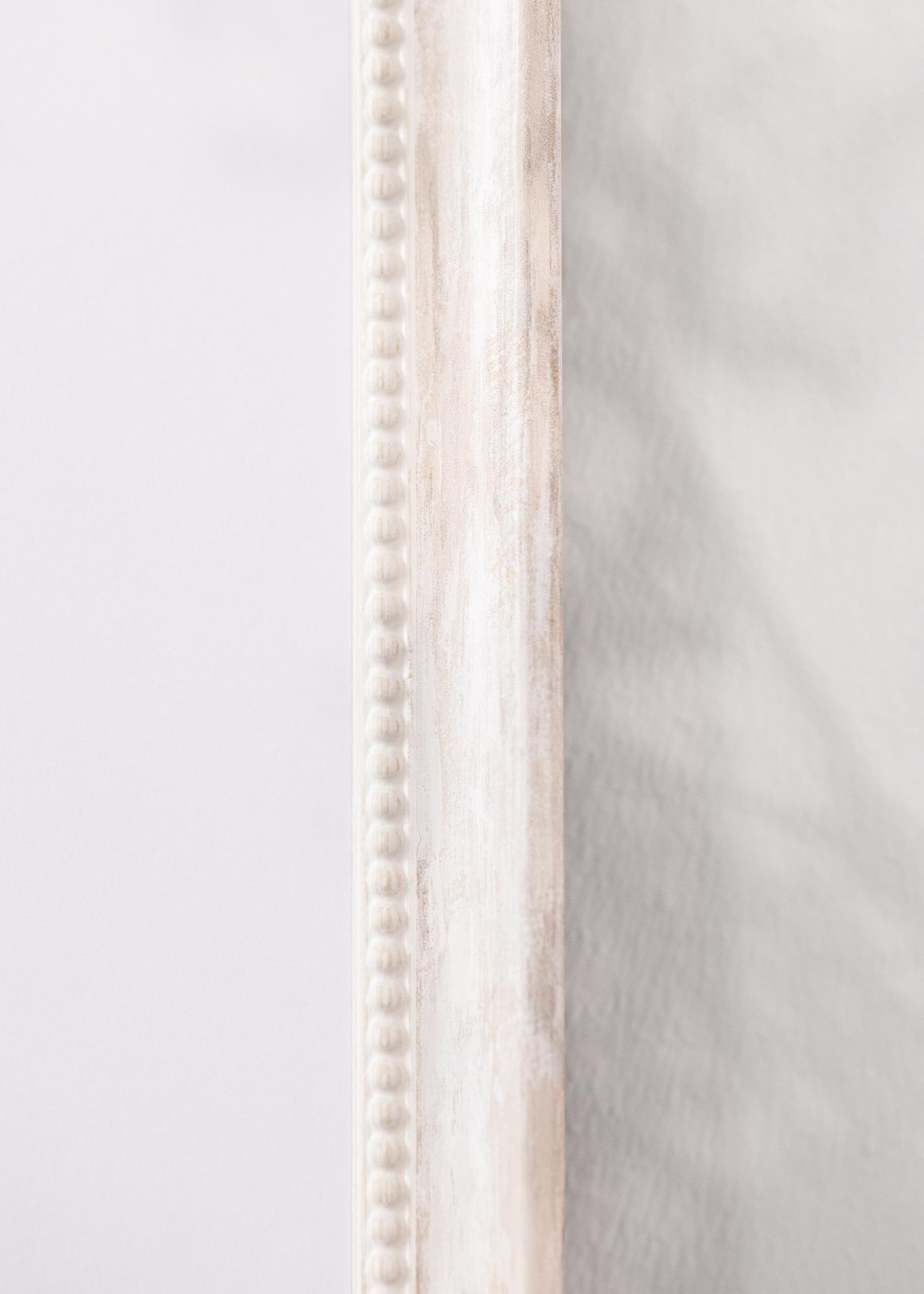 Ez a gyönyörű, 70x100 cm méretű képkeret a rusztikus báj és a letisztult elegancia tökéletes kombinációja. Fából készült, tartós és robusztus szerkezetet kínál, amelyet fehér felületkezelés egészít ki. A finom antik hatást a dekoratív gyöngyperem erősíti az oldalsó részen, mely klasszikus és részletgazdag dizájnt kölcsönöz a keretnek.