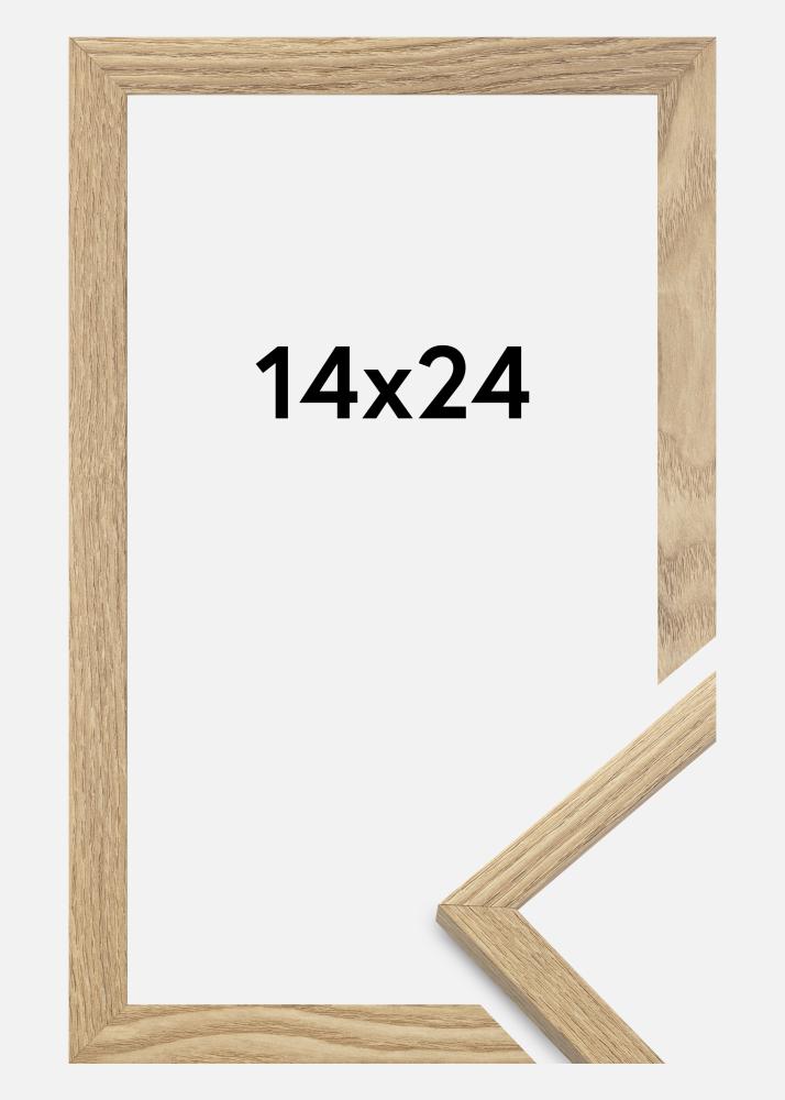 A keret MDF-anyagból készült, fóliázott tölgy színű felülettel, és vékony, 14 mm-es keretprofillal rendelkezik. Bőven van hely, hogy képeidet egy luxus paszpartuval egészítsd ki, köszönhetően a keret 12 mm-es belső mélységének.