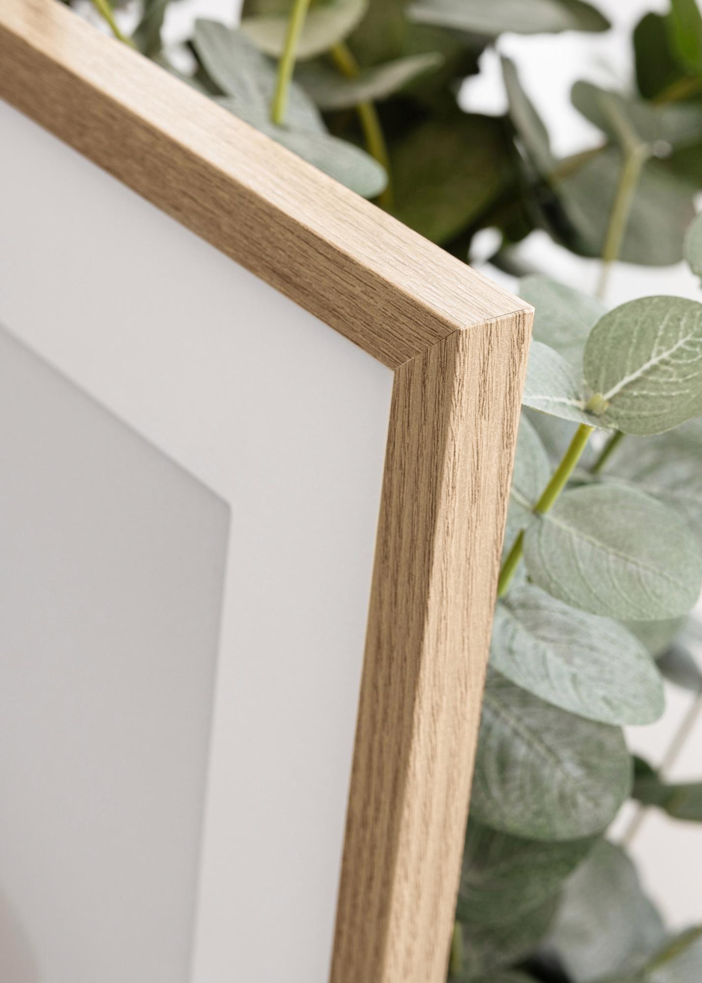 A keret gyönyörű tölgy utánzatú, részletes erezetmintával, amely valósághű és elegáns megjelenést kölcsönöz. Matt felülete kifinomult megjelenést biztosít, amely harmonikusan kiegészíti otthonod. 15 mm-es mélységével ez a képkeret egyszerre robusztus és stílusos, ami tökéletes választássá teszi mindenféle motívumhoz.