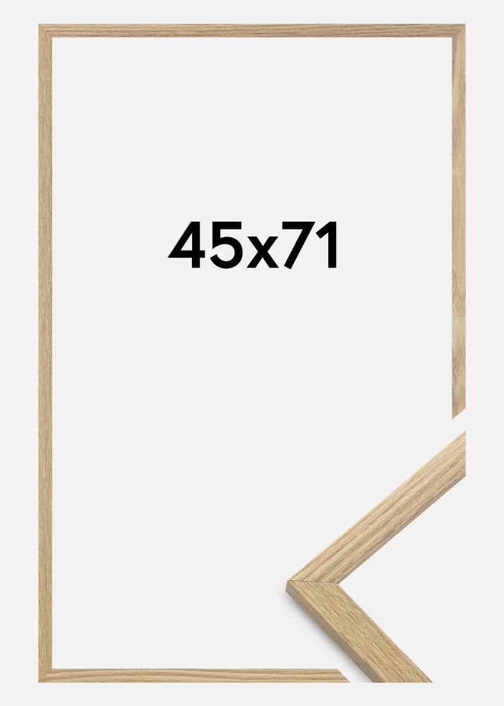 A keret MDF-anyagból készült, fóliázott tölgy színű felülettel, és vékony, 14 mm-es keretprofillal rendelkezik. Bőven van hely, hogy képeidet egy luxus paszpartuval egészítsd ki, köszönhetően a keret 12 mm-es belső mélységének.