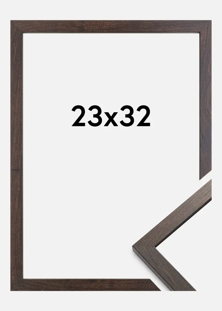 A 23x32 cm-es diószínű képkeret tökéletesen ötvözi a stílust és a funkcionalitást. Sötétbarna, matt felületével és minimalista kialakításával meleg és természetes érzést kölcsönöz a bekeretezett képeknek. A 15 mm-es vékony profil diszkrét keretezést biztosít, amely lehetővé teszi, hogy a téma kerüljön a középpontba, így ideális mind fényképek, mind műalkotások számára.