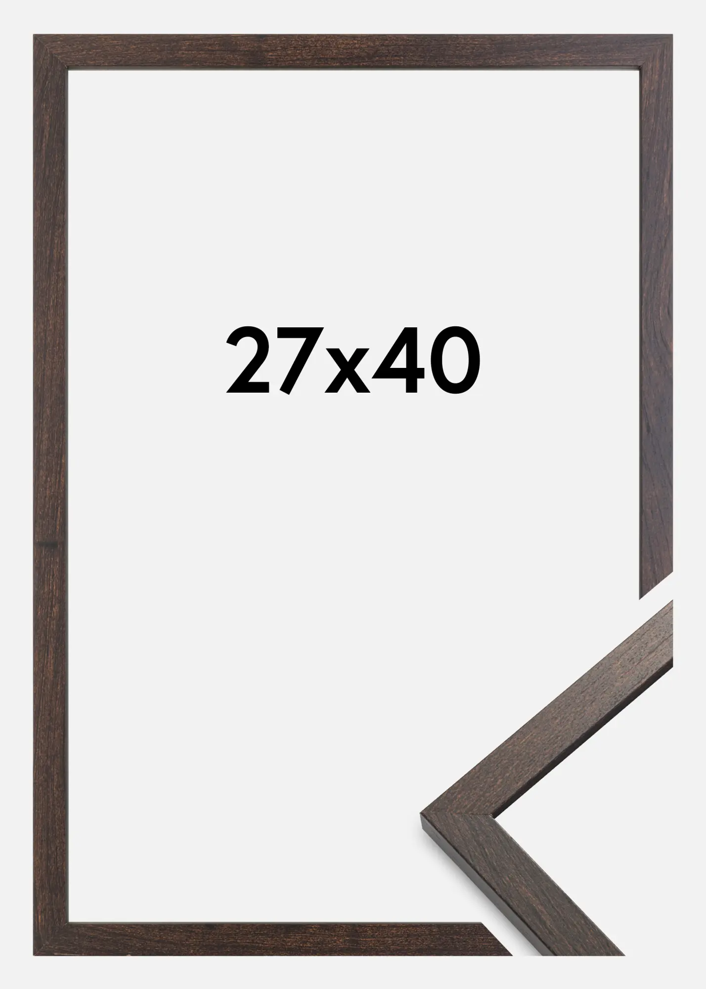 A 27 x 40 cm-es méreteivel ez a képkeret kiváló választás azok számára, akik időtlen és kifinomult megjelenést keresnek. A keskeny profil és a mély, sötét árnyalat elegáns kiegészítést nyújt bármely szobában. Akár családi fotókat, akár műalkotásokat szeretnél bemutatni, ez a keret elegáns és harmonikus prezentációt biztosít képeidnek.