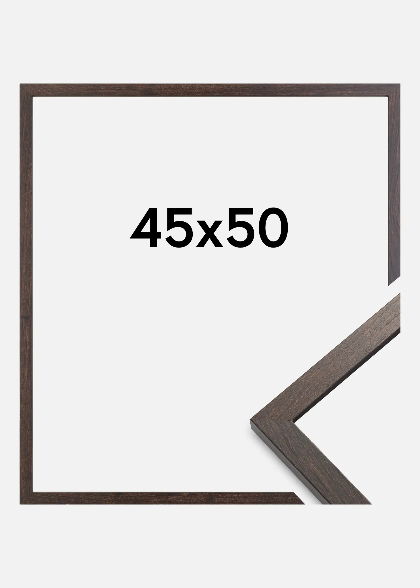 Ez a dió színű képkeret tökéletes kombinációja a stílusnak és a funkcionalitásnak. A 45x50 cm-es méretével ideális a kedvenc fényképeid, műalkotásaid vagy posztereid kiemelésére. A sötétbarna, matt felület meleg és természetes érzetet kölcsönöz, amely illeszkedik mind a klasszikus, mind a modern belső terekhez. A minimalista dizájn 15 mm-es keskeny keretléccel diszkrét keretezést biztosít, így a képed kerül a figyelem középpontjába.