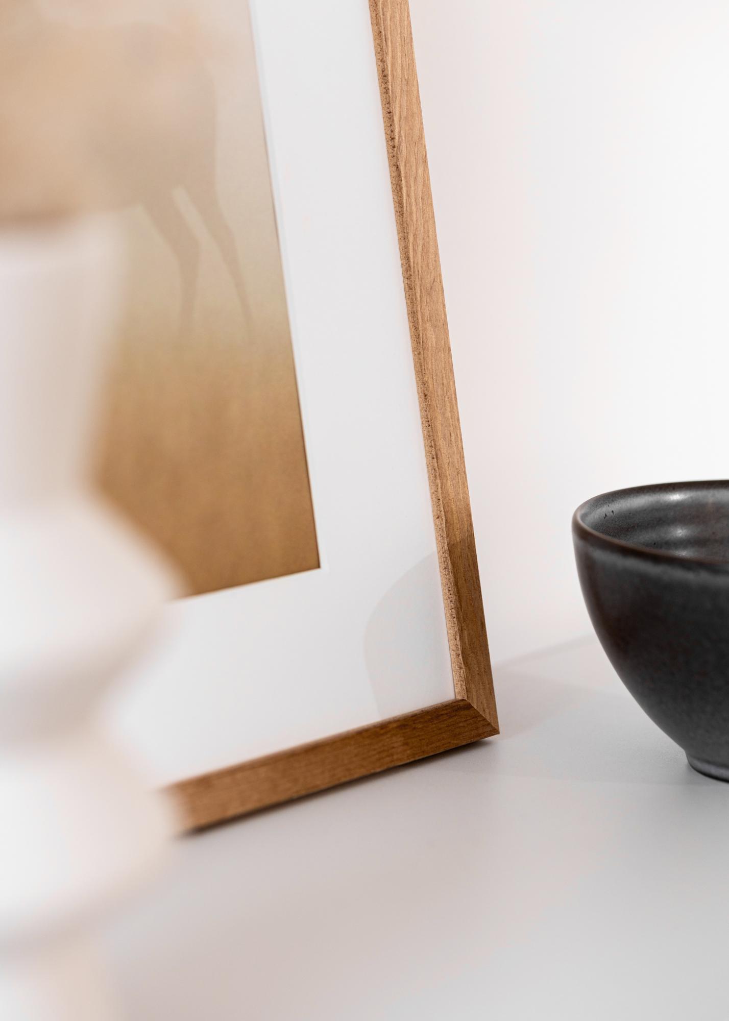 A keret keskeny profillal rendelkezik, a keret lista szélessége 17 mm és mélysége 16 mm. Ez minimalista dizájnt kölcsönöz, amely lehetővé teszi, hogy a motívum középpontba kerüljön. Fenyőből készült, a képkertet szép erezet jellemzi, amely autentikus és harmonikus megjelenést ad. Ezenkívül a hátoldalon fém akasztók találhatók, amelyek lehetővé teszik, hogy vízszintesen és függőlegesen egyaránt könnyedén fel lehessen akasztani.