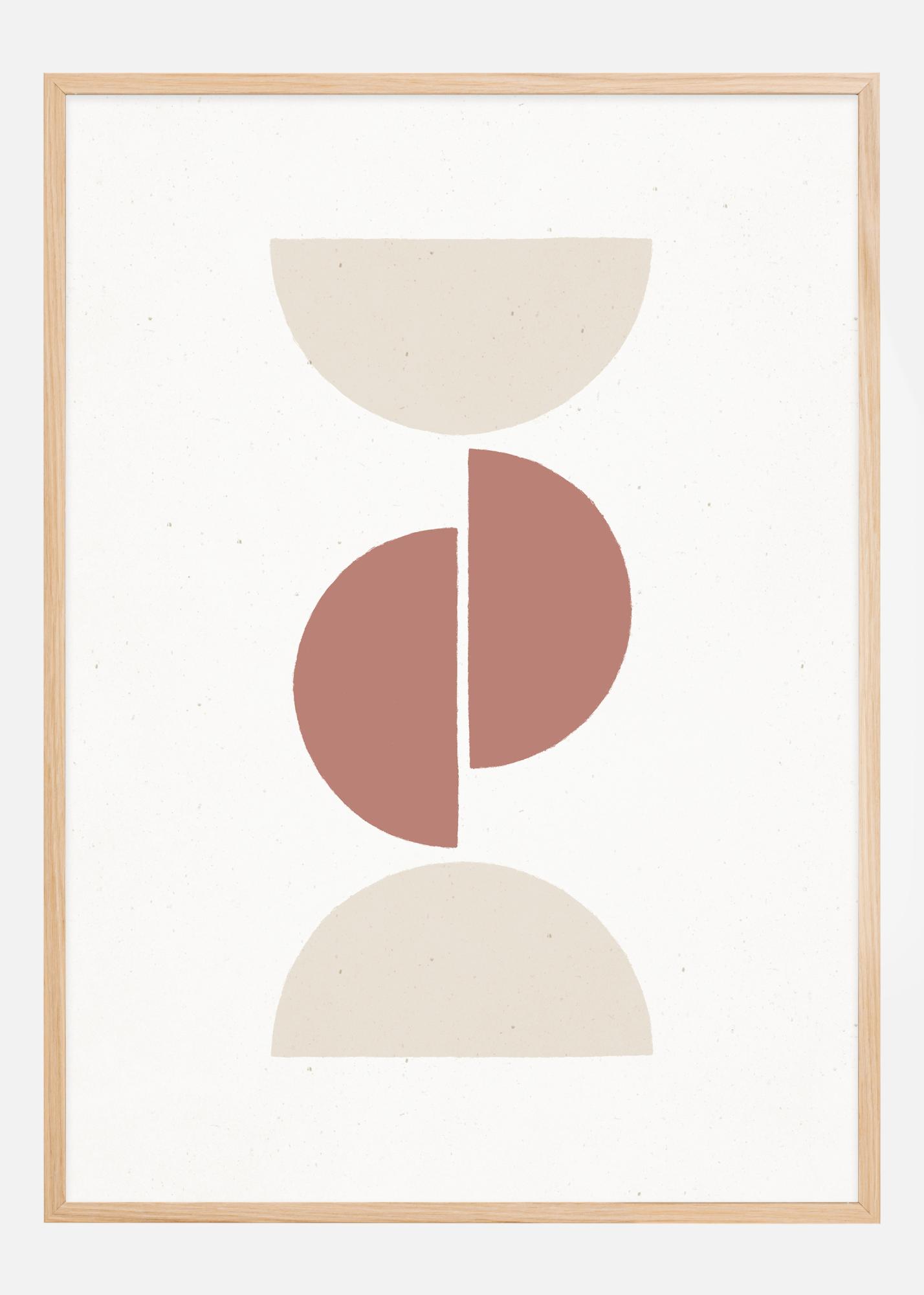 Ez a művészi poszter, melynek címe 'Rozsda és Homok - Geo', absztrakt geometriai formák kompozícióját mutatja be, földszínek harmonikus egyensúlyával. A dizájn félholdakat és körszegmenseket kombinál rozsdás vörös és homokos árnyalatokban, amelyek kiemelik egymást, teret és egyensúlyt teremtve. Ez a geometriai minimalizmus letisztult és modern értelmezése, amely tökéletesen illeszkedik egy skandináv vagy kortárs belső térbe.