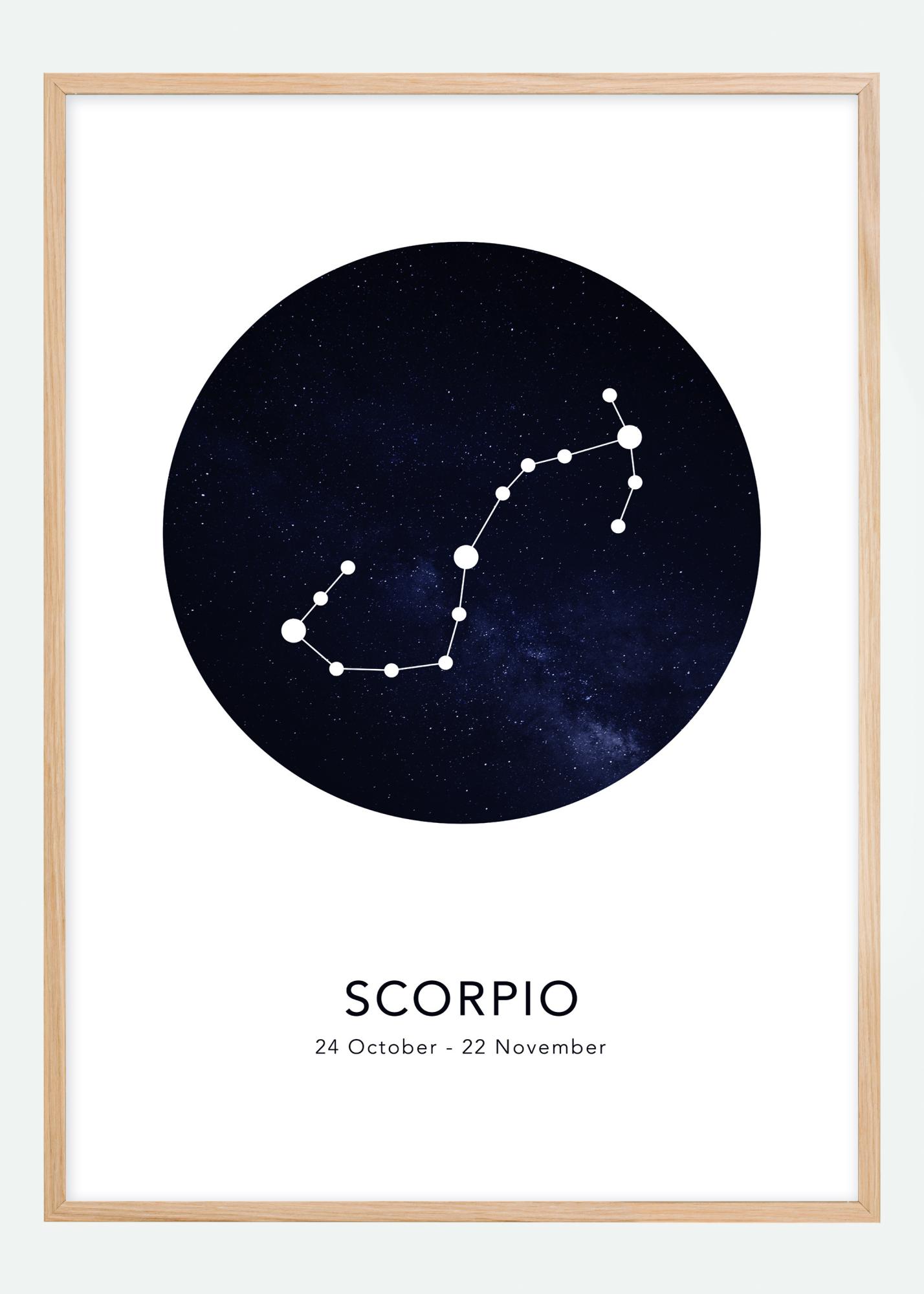 Ajándékozzon egy személyre szabott képet valakinek, akit kedvel! Ez a stílusos poszter a Skorpió csillagjegyet ábrázolja fekete és kék csillagos égbolt hátterében. Alatta található a név az érvényes dátummal angolul.