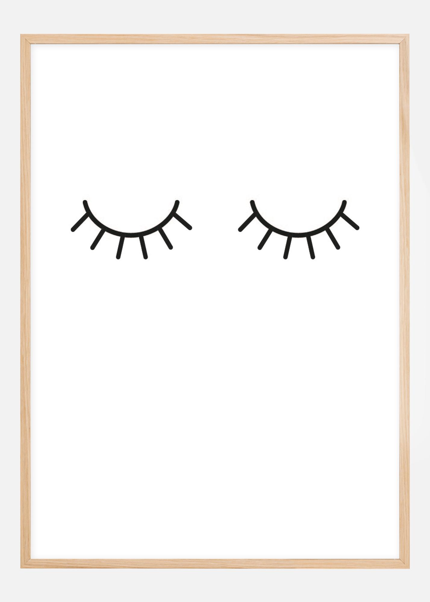 Válasszon stílusos és egyszerű dekorációt a gyerekszobába ezzel az aranyos poszterrel! A motívum csukott szemeket ábrázol hosszú szempillákkal. Mivel fekete-fehér, könnyen párosítható a kerettel és más berendezéssel.