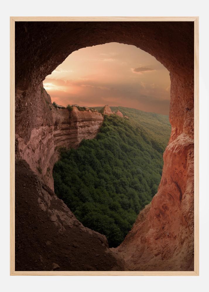 Egy lenyűgöző poszter drámai vörös tájjal. Nézzen át a szikla nyílásán, hogy lássa a távolba nyúló vörös sziklákat. A növekvő zöld fák tökéletes kontrasztot alkotnak, amikor a nap lenyugszik, meleg fényt vetve mindenre. Látogassa meg ezt a helyet otthonról.