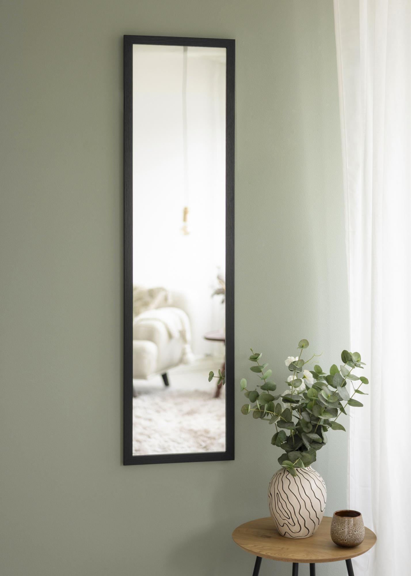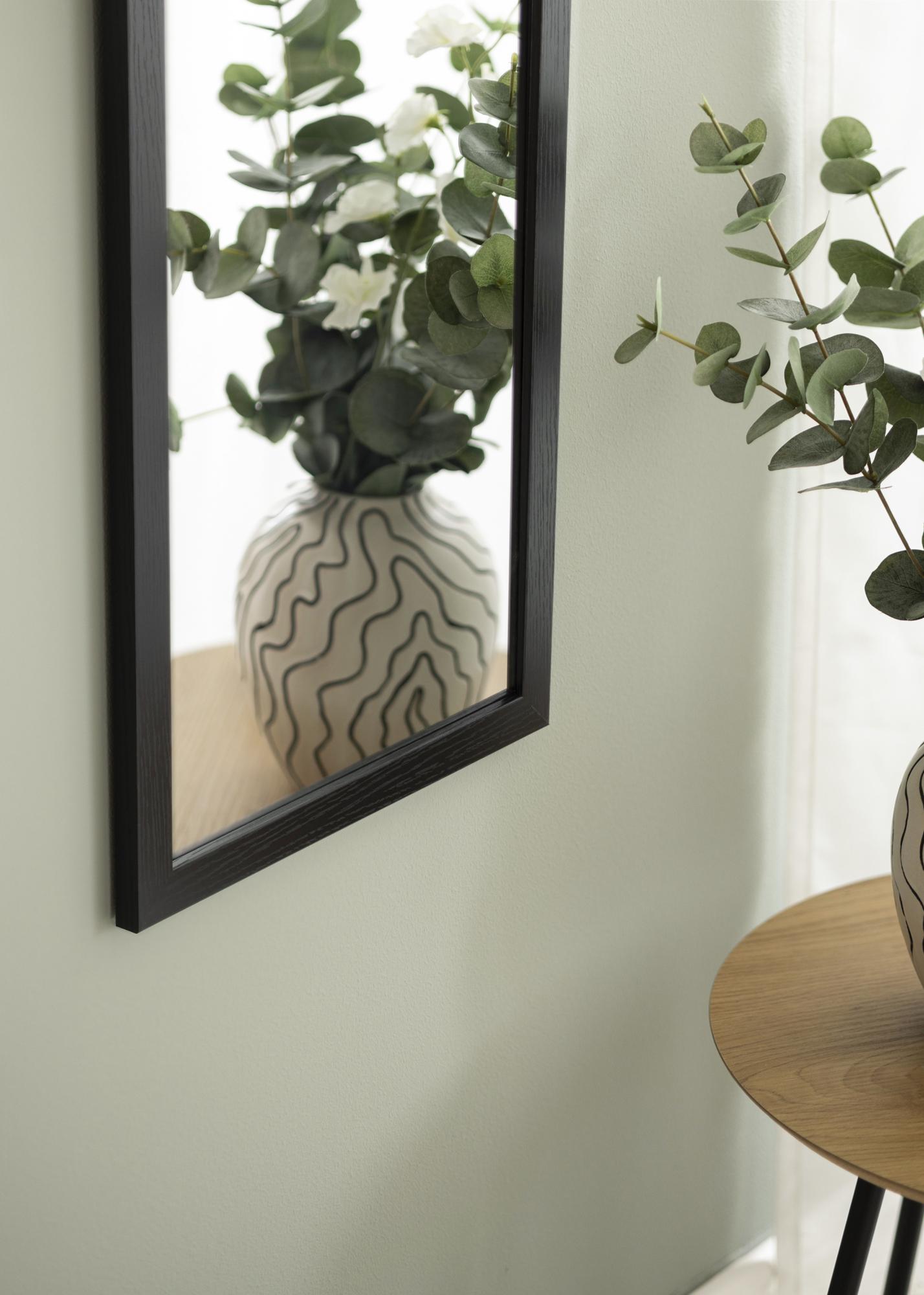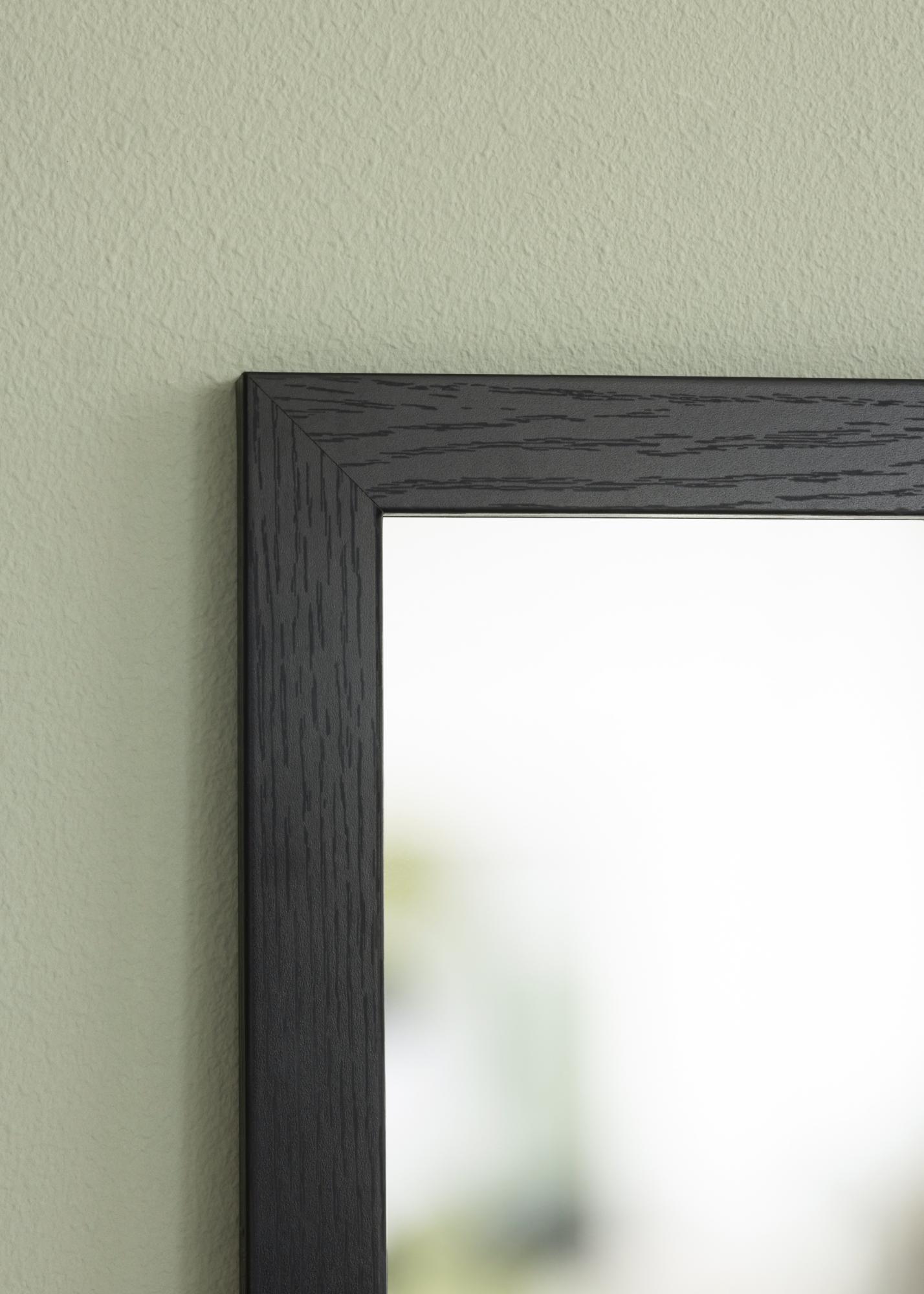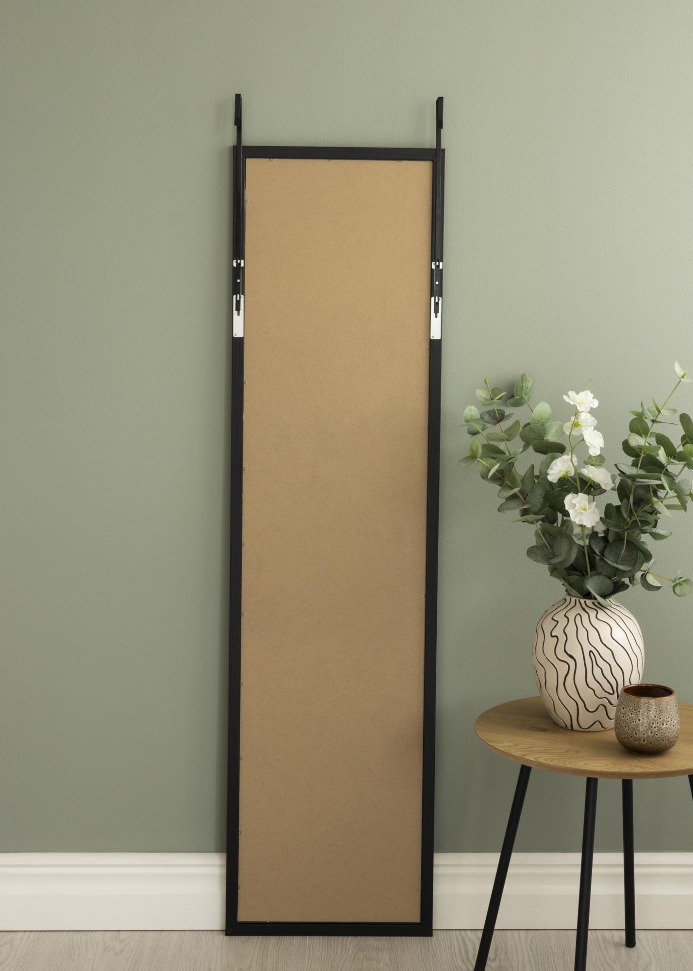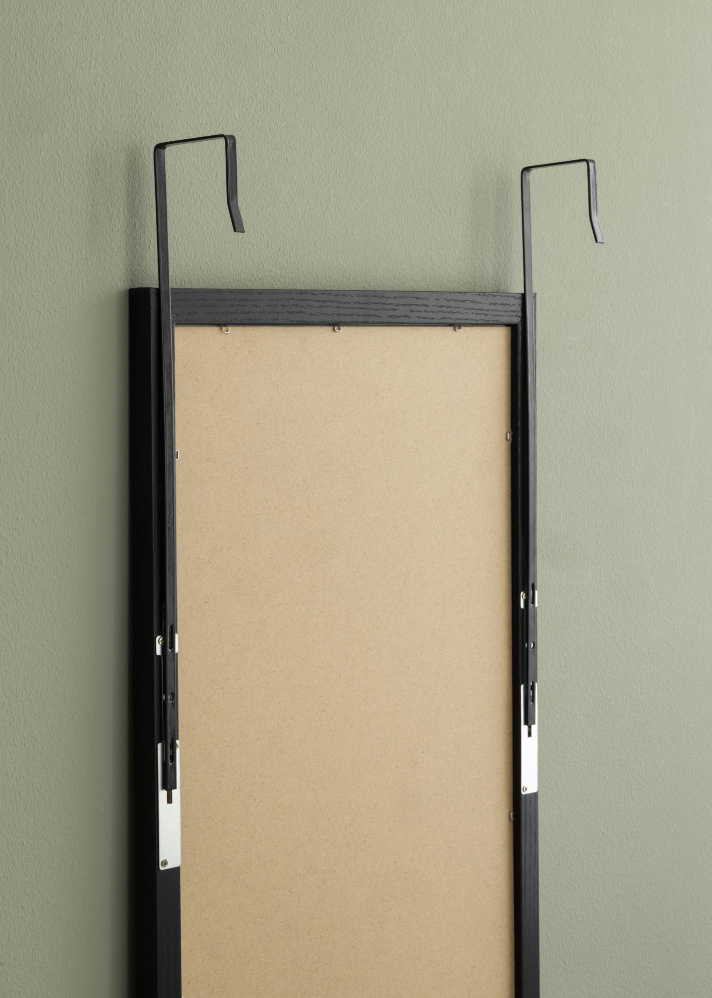 Ez az ajtóra akasztható Tükör karcsú és modern, fekete színű fa kerettel rendelkezik, amely meleg és természetes hatást kölcsönöz. A matt felület diszkrétté teszi a Tükör megjelenését, miközben textúrát és karaktert ad a helyiségnek.