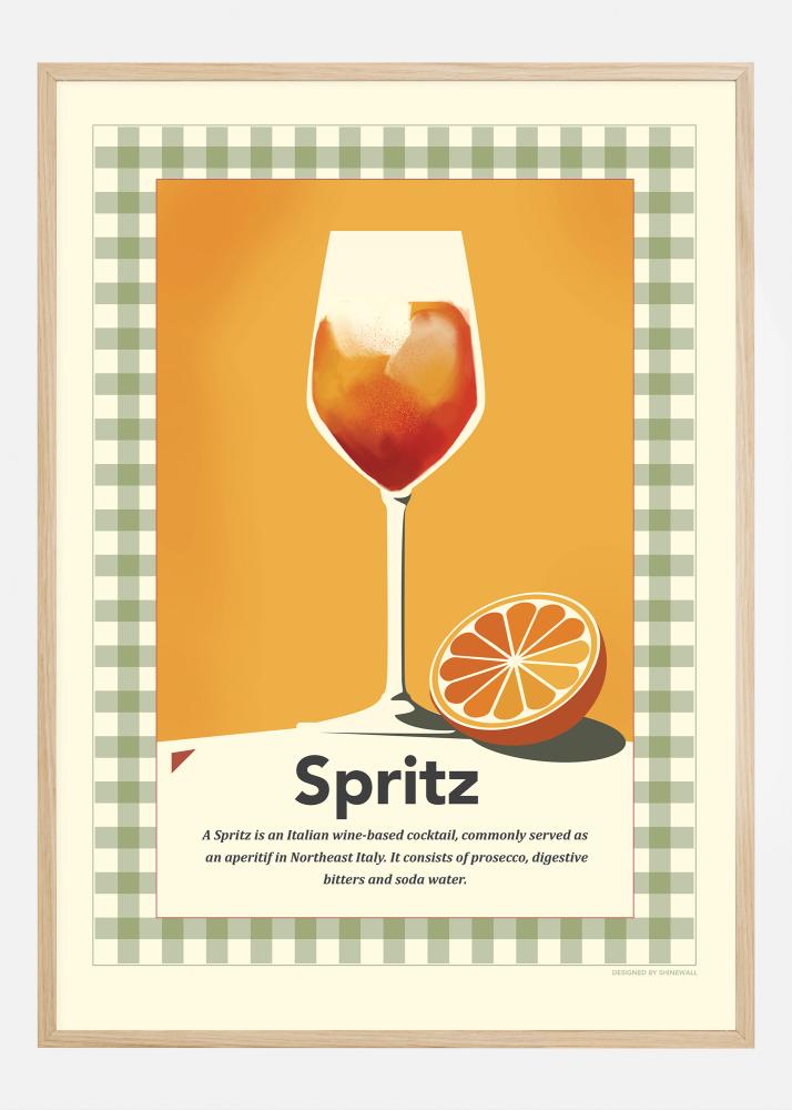 Mindenkinek, aki vágyik a vakáció érzésére, bemutatunk egy posztert, amely közvetlenül az észak-olaszországi napos teraszokra repít. Retro stílusú Spritz plakátunk a klasszikus aperitif előtt tiszteleg egy illusztrációval, amely sugározza a melegséget és az örömöt. Az ital narancssárga árnyalatai egy merész, zöld kockás háttér előtt olyan benyomást keltenek, amely egyszerre nosztalgikus és időtlen.