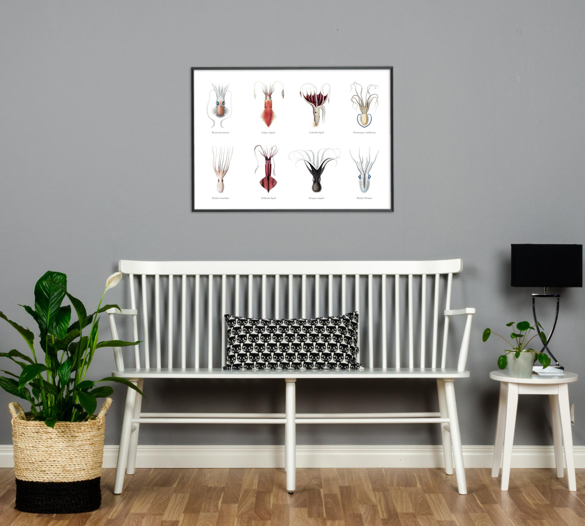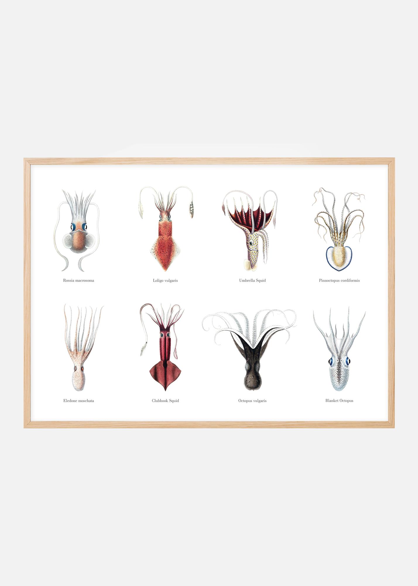 A polip valóban egy érdekes teremtmény. Tudtad például, hogy három szíve van? Vagy hogy intelligens agya parányi, annak ellenére, hogy az óriási dolog, amely fejnek tűnik, egy hatalmas agyat tartalmaz? Továbbá, majdnem 800 polipfaj létezik! Ez a szép vintage poszter közülük 8-at mutat be - egyik sem hasonlít a másikra, de mindegyik ugyanolyan lenyűgöző. A régi rajzok aranyos, jól kidolgozott részleteket tartalmaznak, és minden faj alatt ott áll a neve.