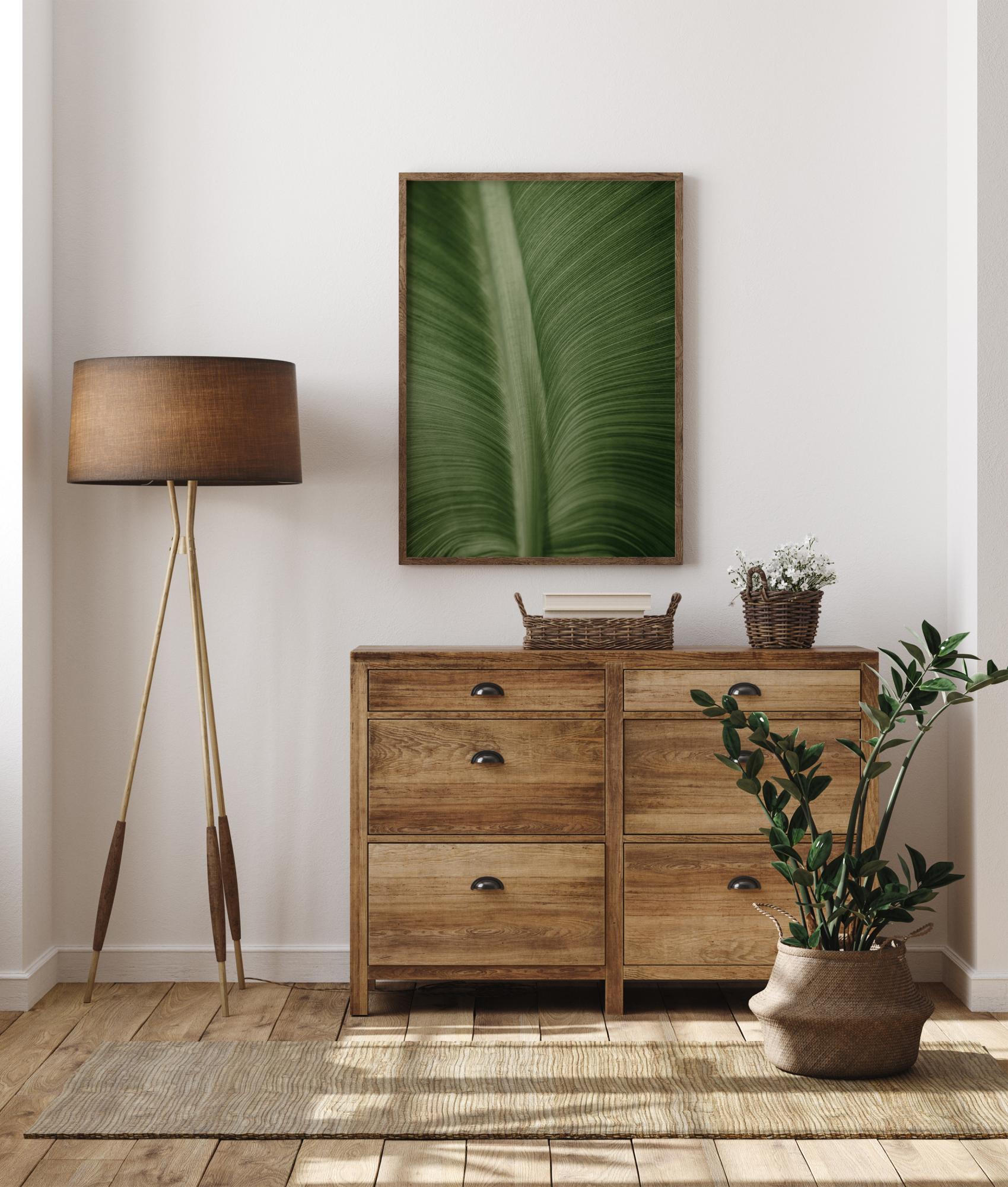 Makroposzter egy levélről, amely bemutatja az erek és a szár szerkezetét. Szép zöld színek töltik meg a képet, hogy nagyon nyugtató hatást keltsenek. Vékony erek hajlanak kifelé óvatosan a levél vastag és erős középéről. Merülj el a természetben ezzel a közeli képpel.