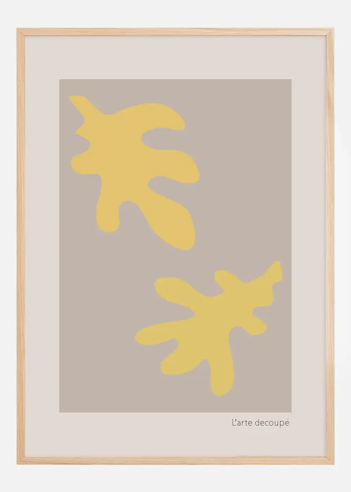 Ez a merész és élénk poszter, 'L'arte découpé', egy olyan sorozat része, amely a modern művészet lényegét ragadja meg játékos csavarral. Ez az egyedi nyomat két absztrakt alakot ábrázol erőteljes sárga színnel, ami kiemelkedik egy kifinomult sötétszürke háttér előtt. A lebegő formák dinamikusak és vonzóak, mintha szabadon lebegnének a felületen. Meleg és energikus színvilágával ez a poszter életet és karaktert ad minden helyiségnek, ahol elhelyezik, a nappalitól a kreatív munkahelyekig.