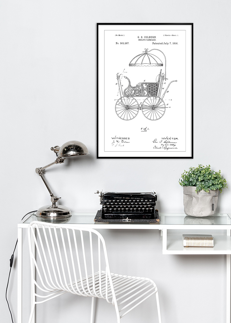 A szabadalmi rajz nemcsak a történelem egy érdekes darabja, hanem esztétikai érték is azoknak, akik kedvelik a vintage és retro lakberendezést. Ez a szabadalmi poszter ideális ajándék új szülőknek, babakocsi-gyűjtőknek vagy egyedülálló lakberendezési részletként egy gyerekszobában. Témát szolgáltat a beszélgetésekhez és csodálatos emlékeztető arra, milyen messzire jutottunk a gyerekápolás és design világában.