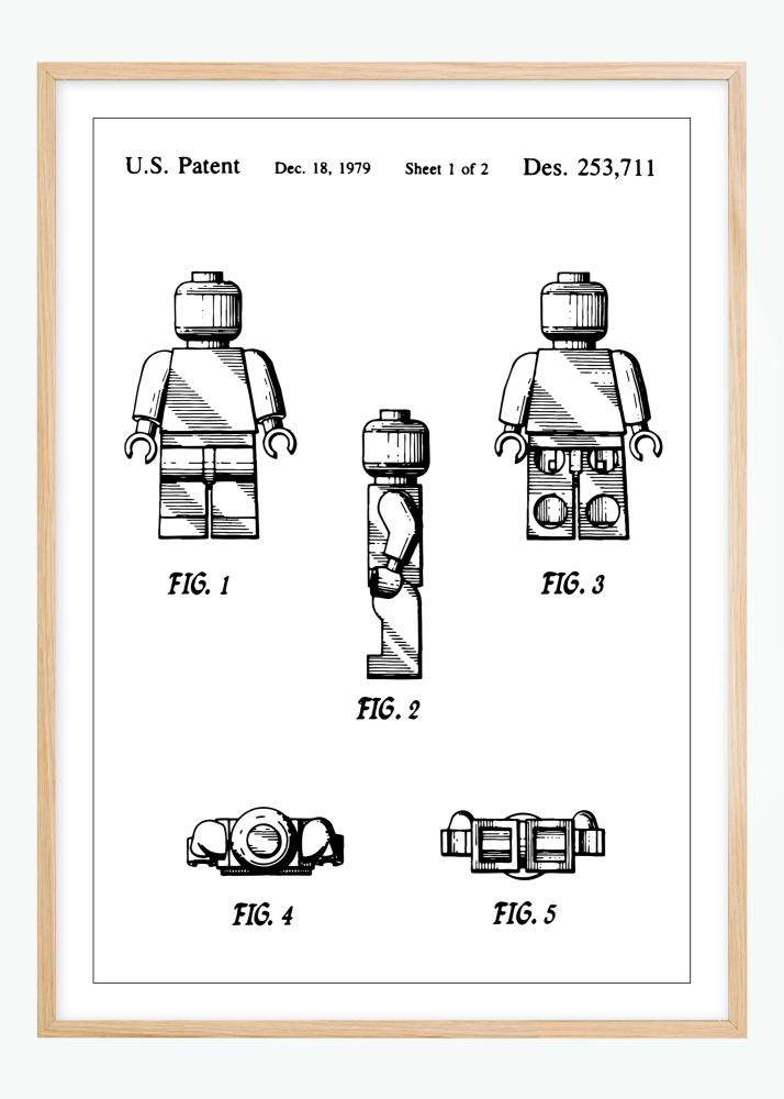 Ez a szabadalmi poszter egy klasszikus építhető Lego figurát mutat be, amely időtlen és kreatív játék, amely generációk óta lenyűgözi a gyermekek fantáziáját. Az engedélyezése 1979. december 18-án történt, a Des. 253,711 számmal, az ábra több nézetben ábrázolja az építhető figurát, bemutatva a játék moduláris kialakítását és rugalmasságát. Ez egy egyszerű, ám mégis zseniális bemutatása az interaktív és oktató jellegű játék koncepciójának.
