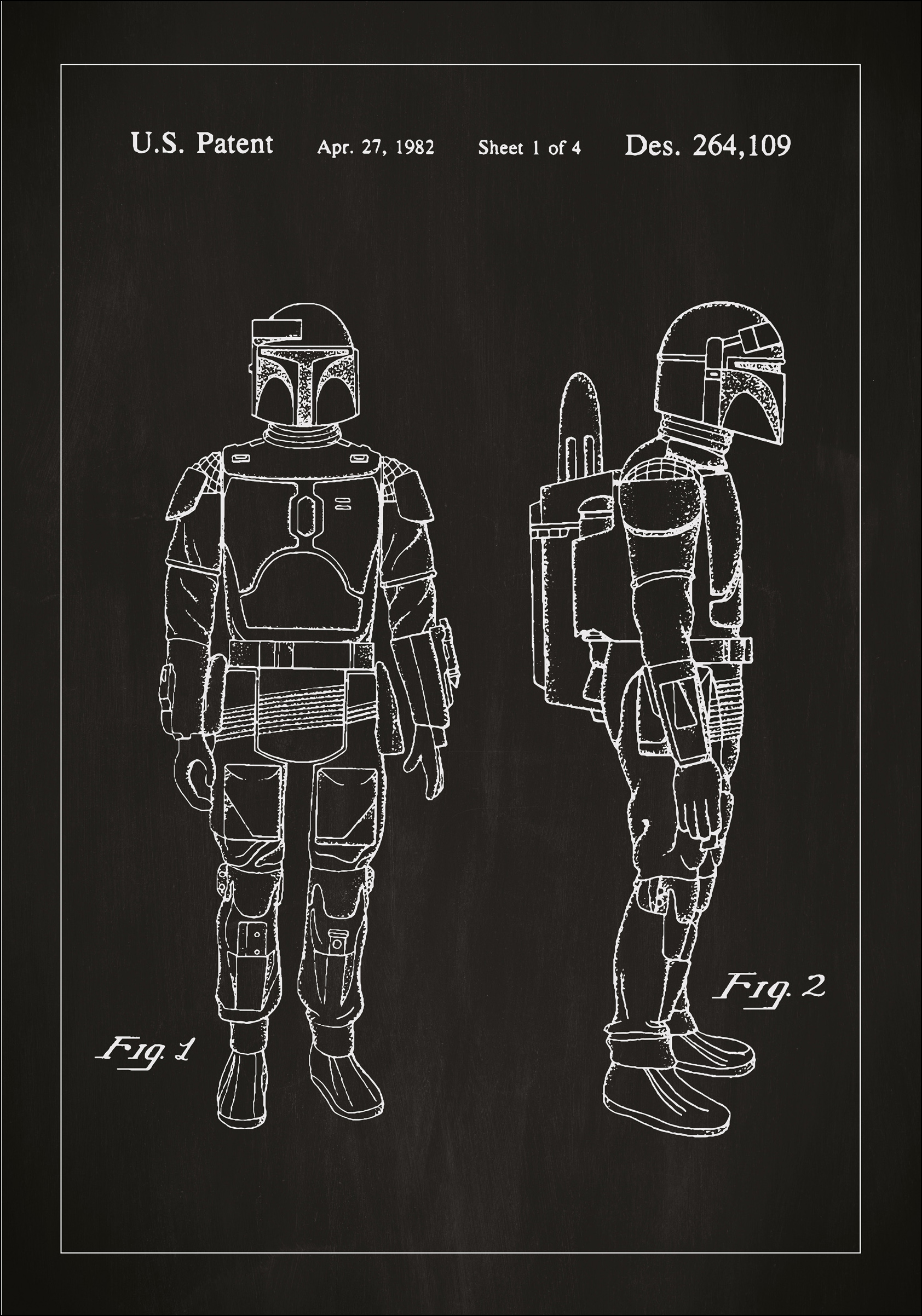 Fedezze fel a nosztalgikus bájat és az innovatív dizájnt a kizárólagos szabadalom-plakátunkkal, amely a klasszikus Boba Fett páncélját ábrázolja a Star Wars-ból. Ez a részletes szabadalmi rajz, amelyet eredetileg az amerikai szabadalmi hivatalnak nyújtottak be, a dizájntörténet lenyűgöző részét képviseli. Tökéletes a technológia rajongói és gyűjtők számára, ez a szabadalom poszter stílusos emlékeztetőként szolgál az emberiség kreatív törekvéseire és technológiai fejlődésére.